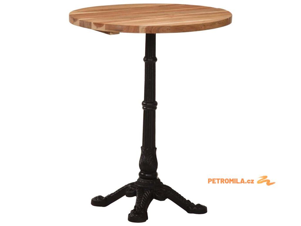 Stolní deska je vyrobená z masivního akáciového dřeva, a proto je pevná a stabilní. Základna z litiny zajišťuje výtečnou rovnováhu a pevnost. Tento jídelní stůl vám rovněž poslouží k odkládání nápojů či jiných věcí, které chcete mít vždy po ruce.