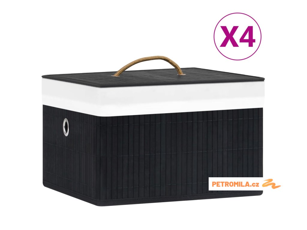 Bambusové úložné boxy 4 ks černé