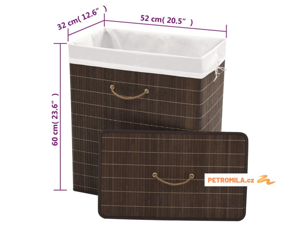 Bambusový koš na prádlo čtverhranný tmavě hnědý
