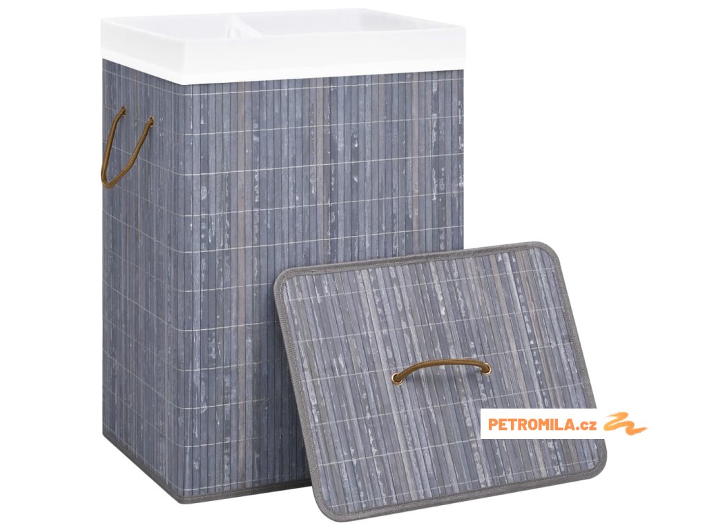 Bambusový koš na prádlo se 2 přihrádkami šedý 72 l