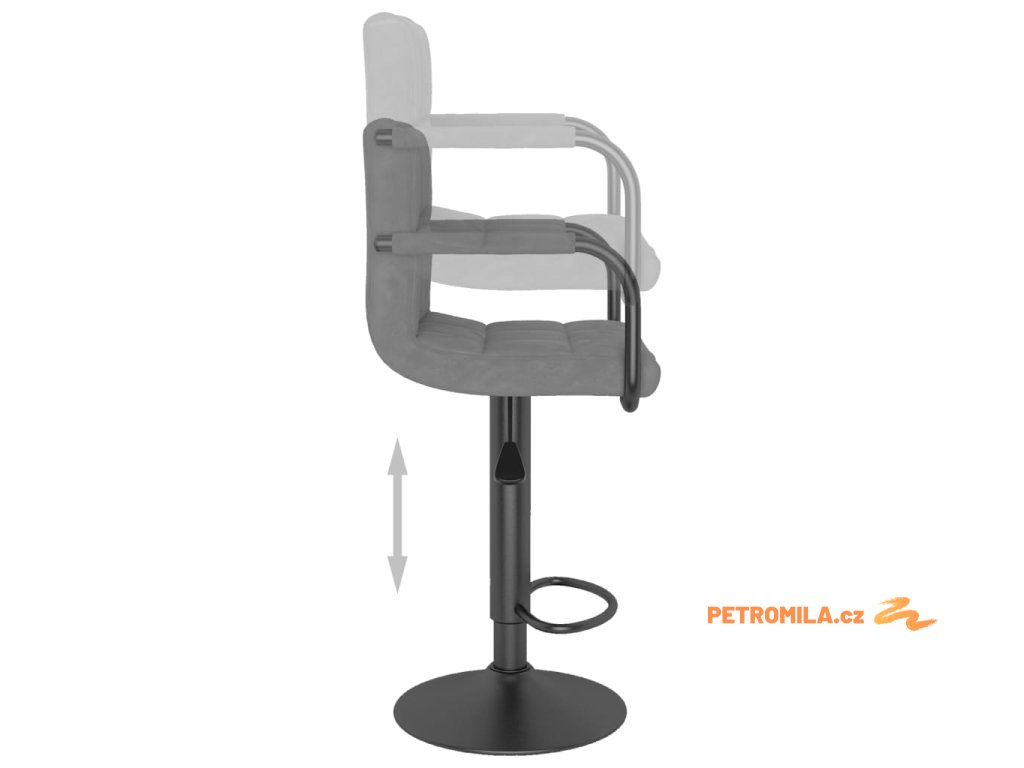 Židle je čalouněná měkkým sametem, který je příjemný na dotek a nabízí optimální komfort. Rám z práškově lakované oceli zaručuje mimořádnou odolnost, zatímco vestavěná opěrka na nohy vám zase zajistí pohodlnější posezení. Výšku navíc snadno upravíte pomocí mechanismu s plynovým pístem. Barová židlička představuje dokonalý doplněk do každého funkčního baru či jídelny. Židle se navíc otáčí o 360 stupňů, což jí dodává skvělou flexibilitu.