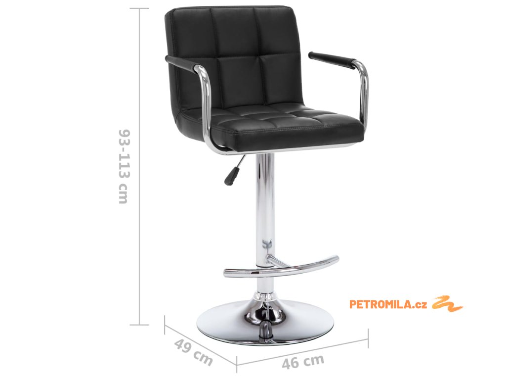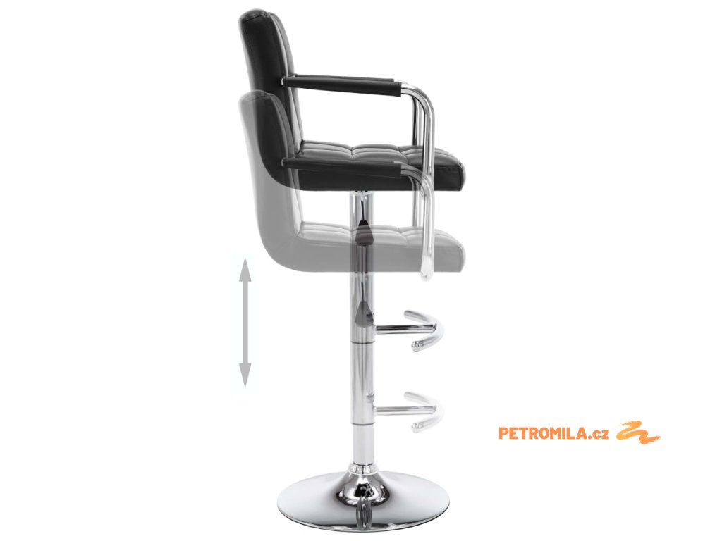 Sedák i opěradlo jsou čalouněné kvalitní umělou kůží, takže se vám na nich bude velmi pohodlně sedět. Pevný rám z chromované oceli navíc židlím zajišťuje mimořádnou odolnost a dlouhou životnost. Praktický mechanismus s plynovým pístem umožňuje nastavit si výšku stoličky dle vašich potřeb. Zabudované područky a opěrka nohou vám zase při sezení poskytnou dodatečnou oporu a maximální komfort.