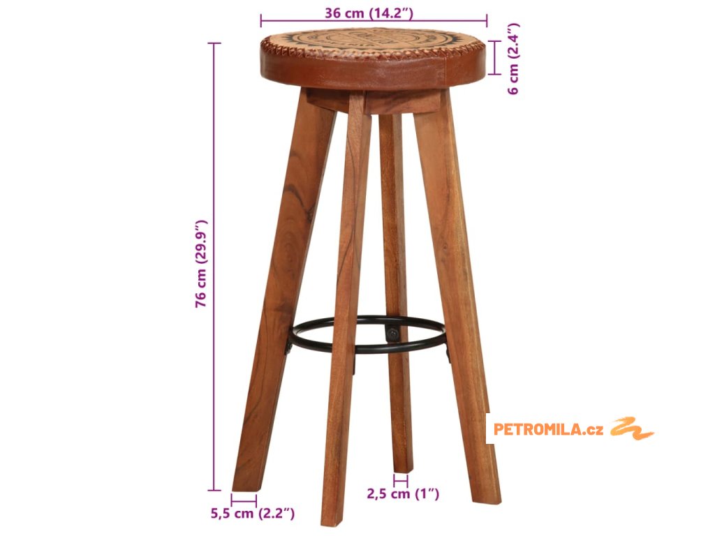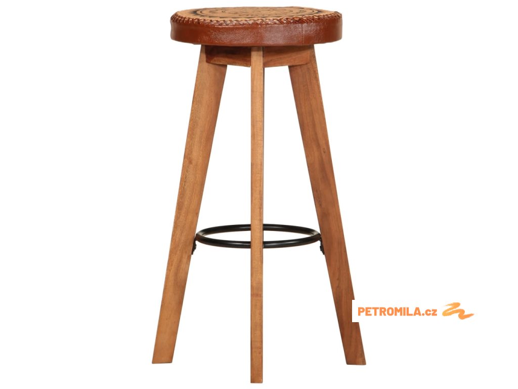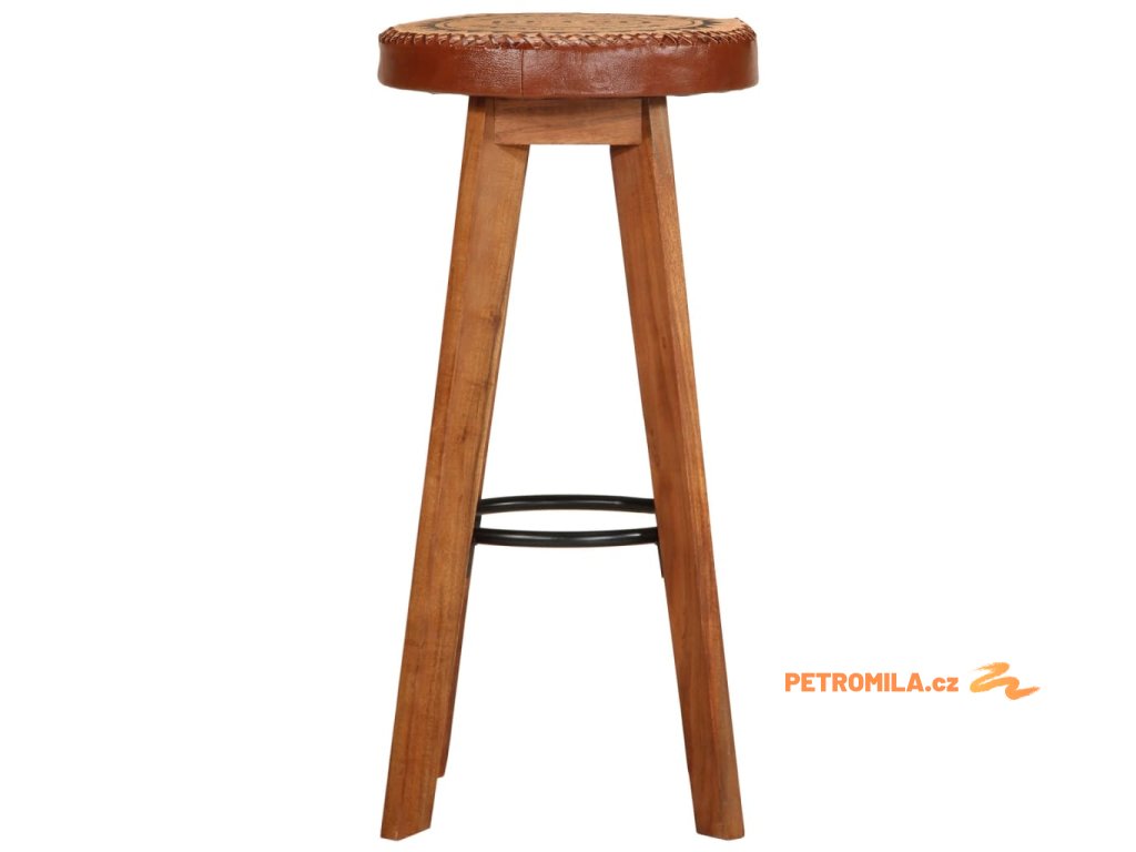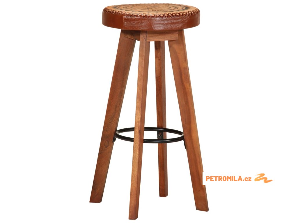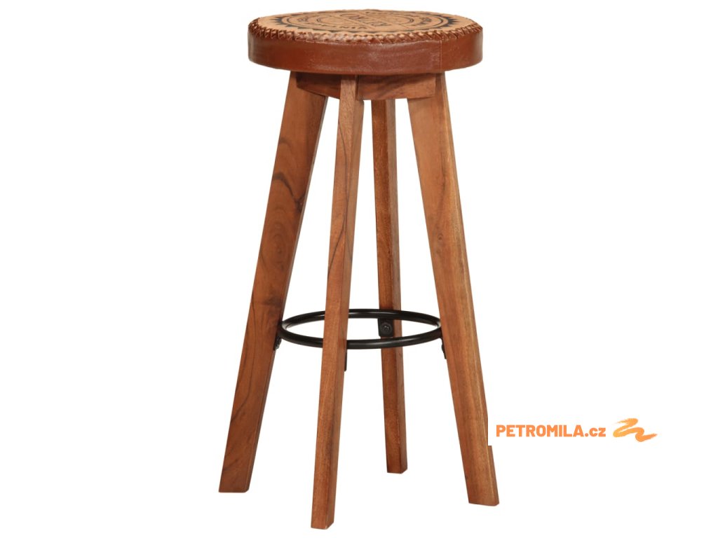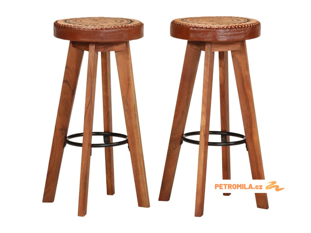 Barové stoličky 2 ks pravá kůže a masivní akáciové dřevo