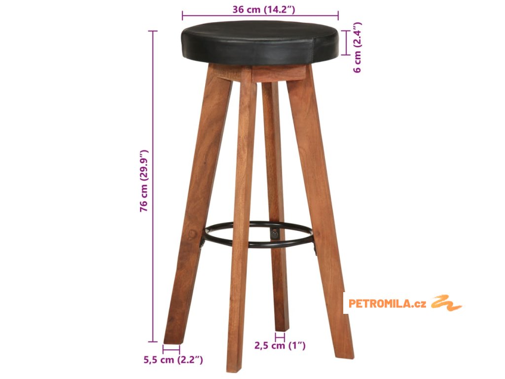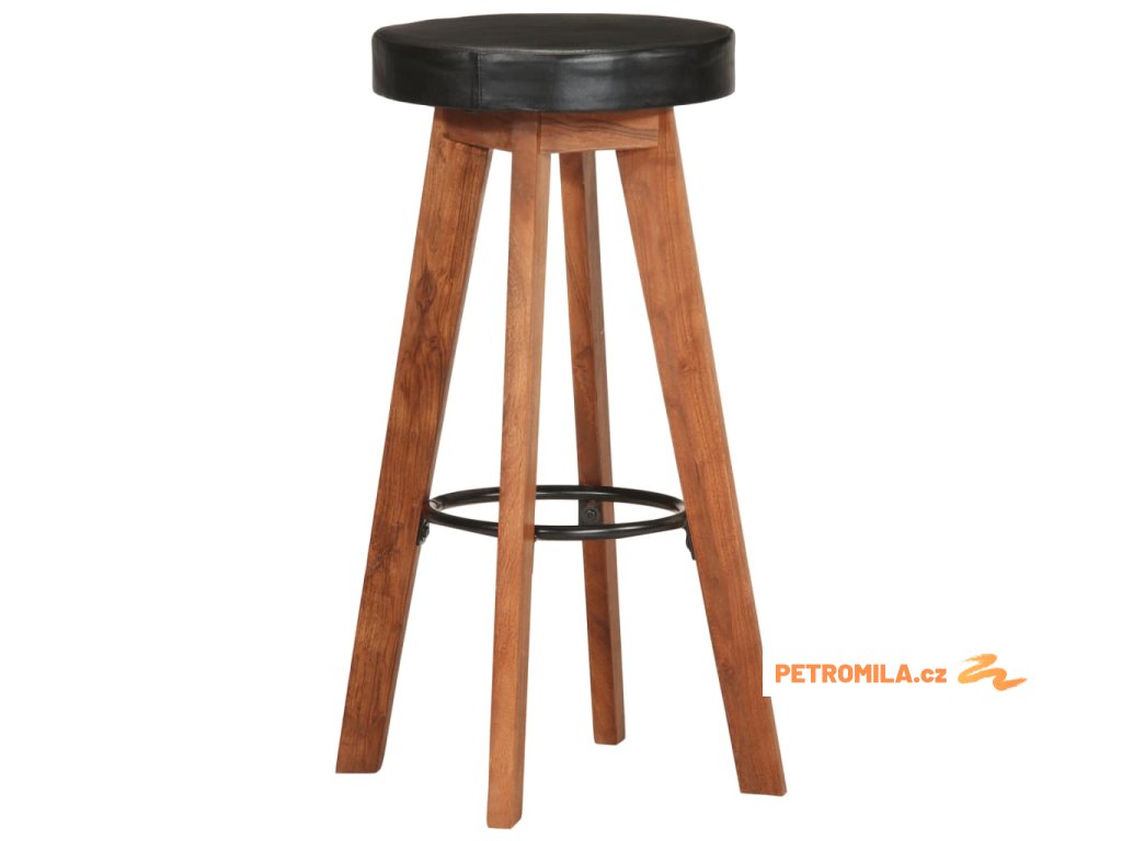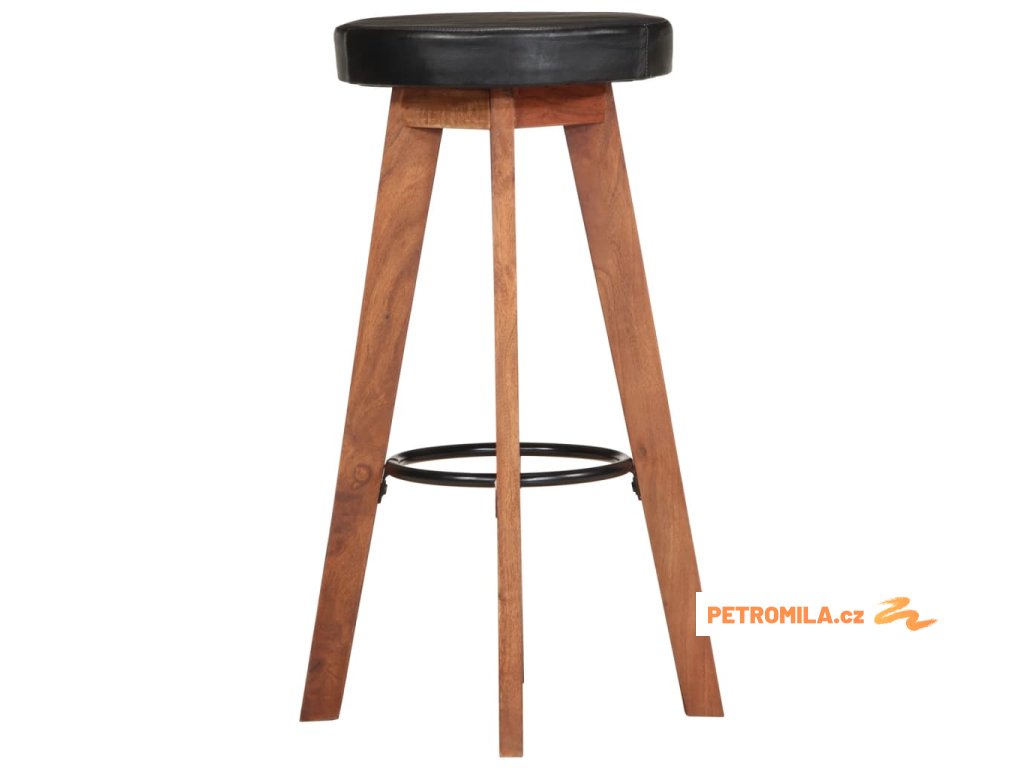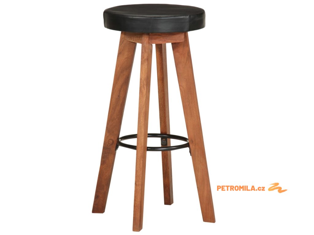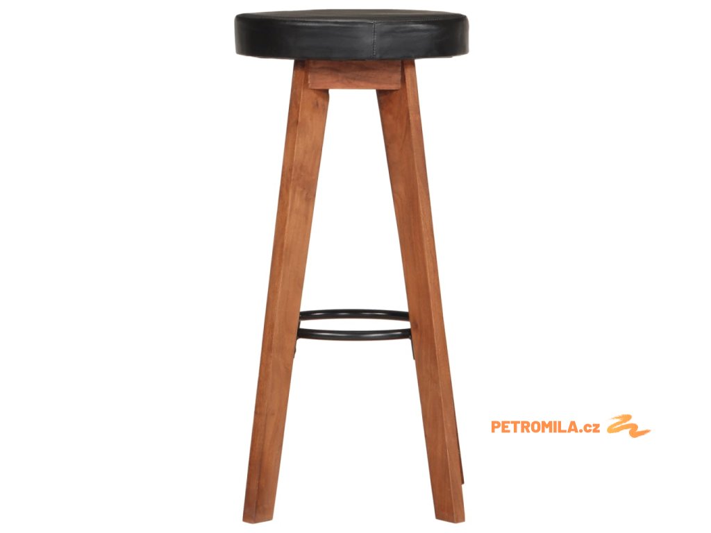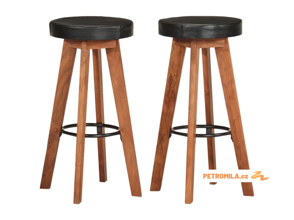 Barové stoličky 2 ks pravá kůže a masivní akáciové dřevo