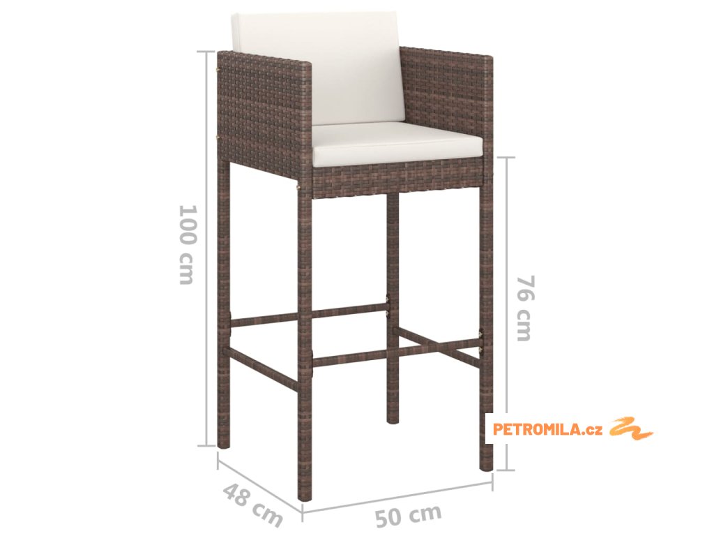 Barové stoličky 2 ks s poduškami hnědé polyratan