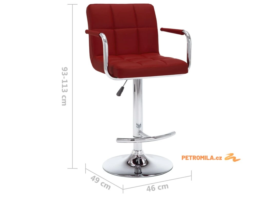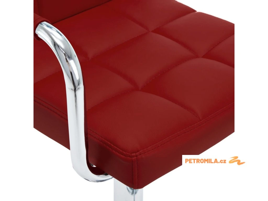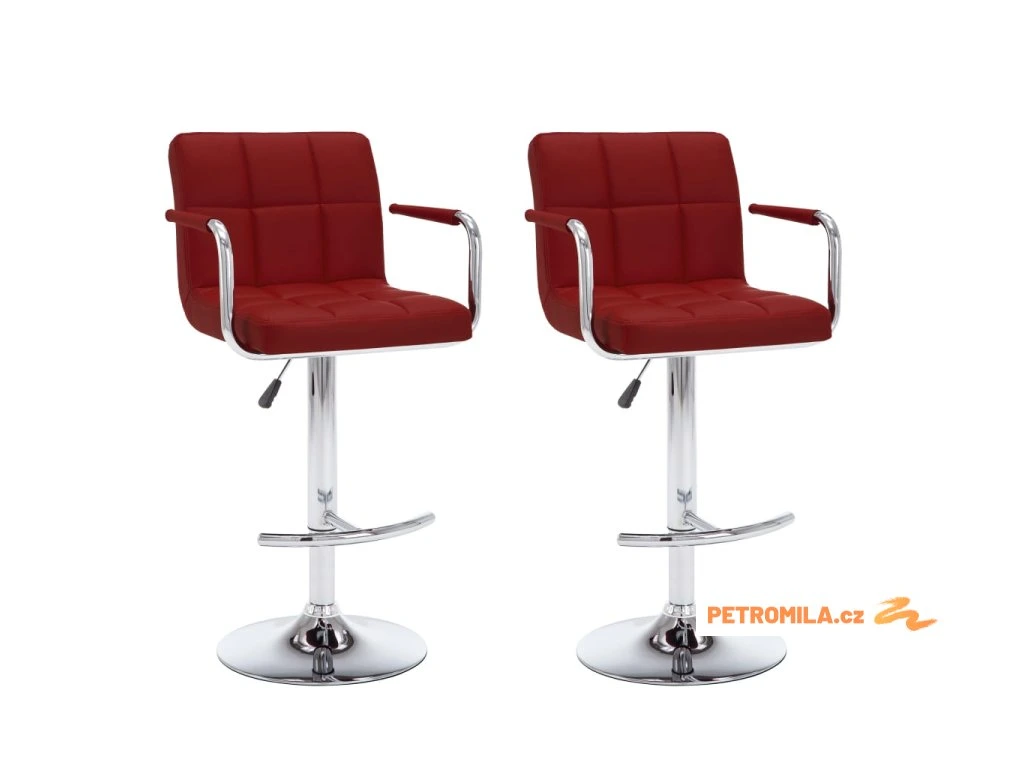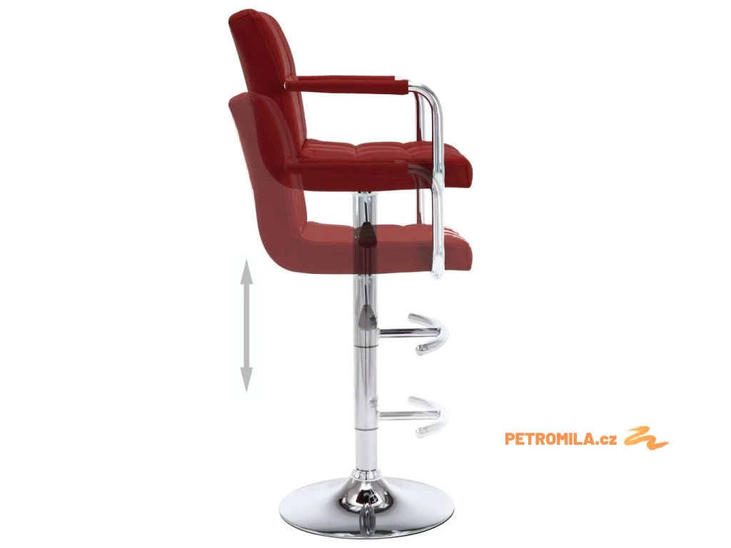Sedák i opěradlo jsou čalouněné kvalitní umělou kůží, takže se vám na nich bude velmi pohodlně sedět. Pevný rám z chromované oceli navíc židlím zajišťuje mimořádnou odolnost a dlouhou životnost. Praktický mechanismus s plynovým pístem umožňuje nastavit si výšku stoličky dle vašich potřeb. Zabudované područky a opěrka nohou vám zase při sezení poskytnou dodatečnou oporu a maximální komfort.