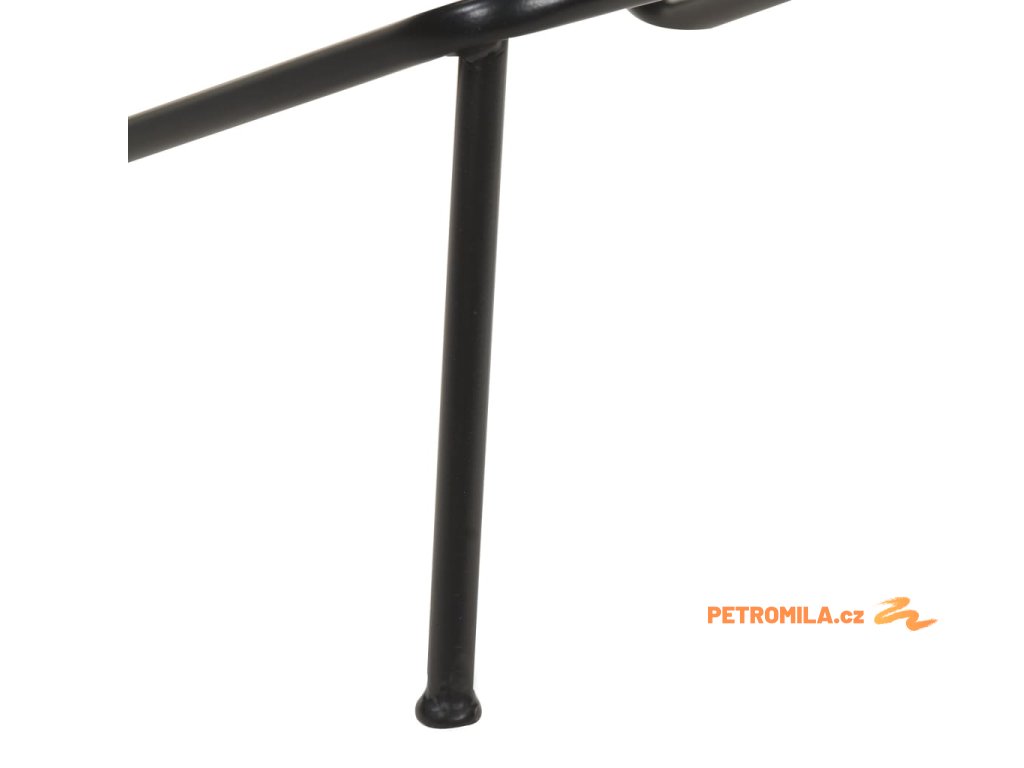 - Materiál: pravá kozí kůže s hnědou povrchovou úpravou, práškově lakované železo, plátno