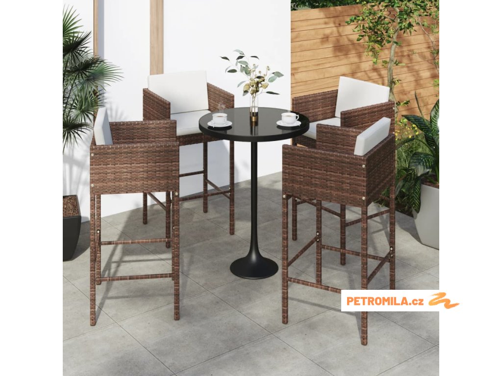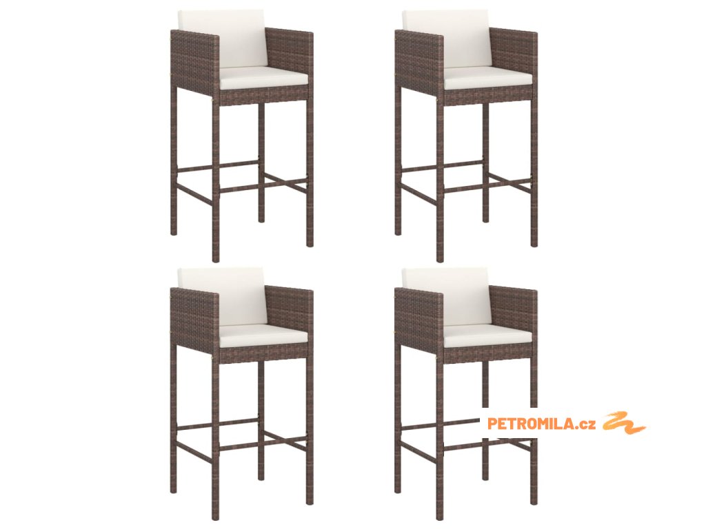 Barové stoličky 4 ks s poduškami hnědé polyratan