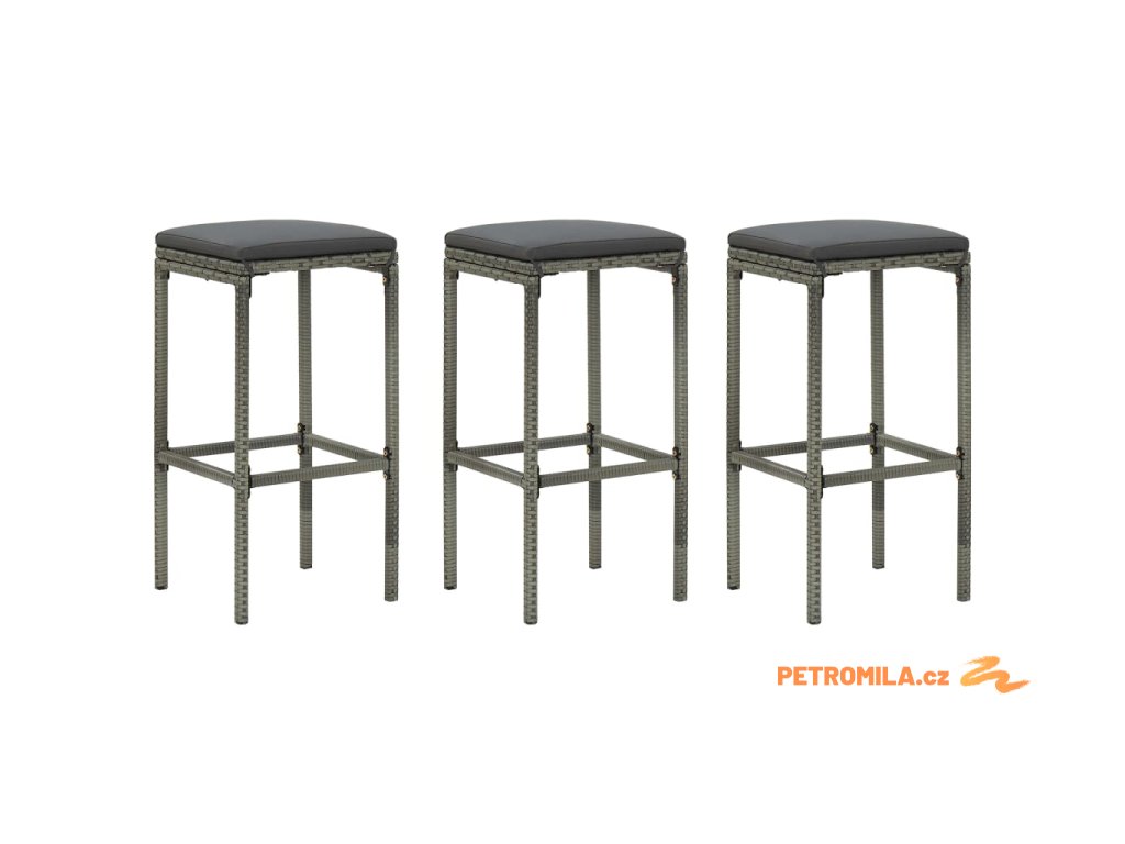 Barové stoličky s poduškami 3 ks šedé polyratan