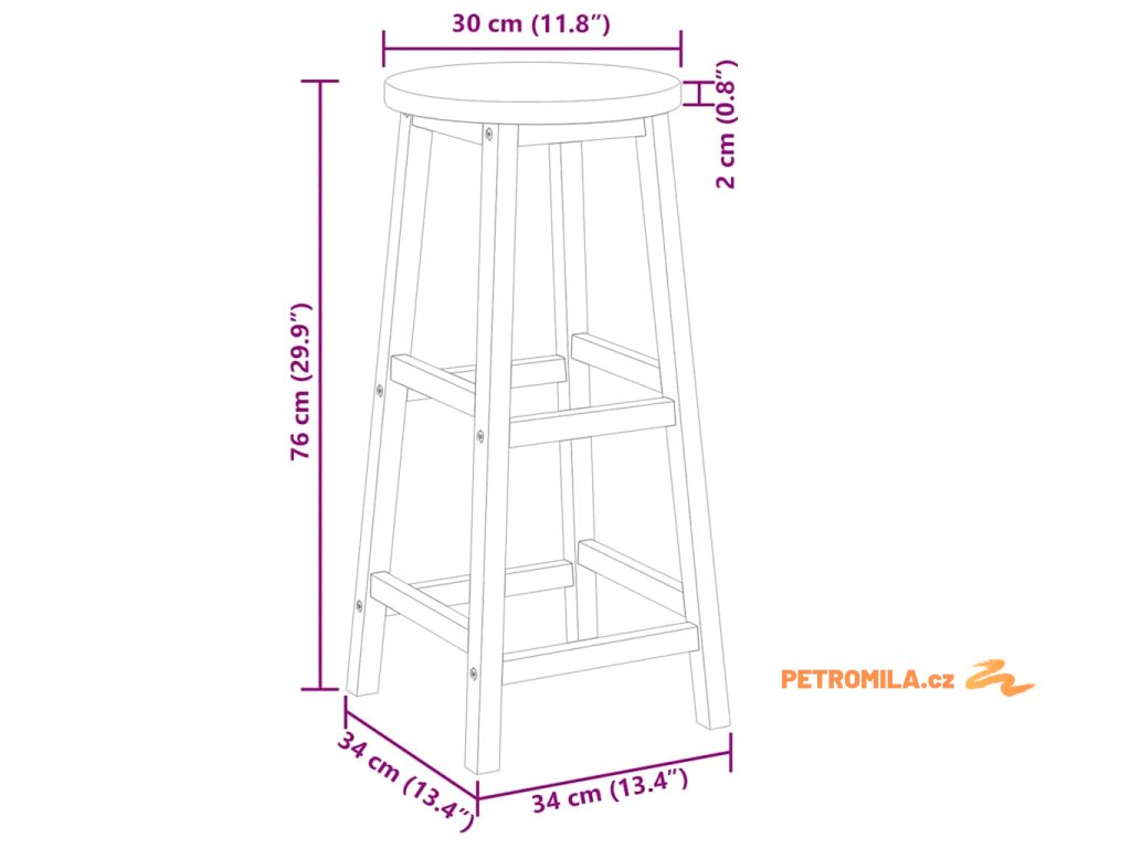 Barové židle 2 ks masivní akácie 34 x 34 x 76 cm