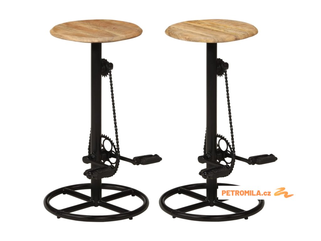 Barové stoličky jsou vyrobeny z masivního mangovníkového dřeva a oceli, díky čemuž jsou velmi stabilní a odolné. Disponují opěrkami nohou, které se podobají pedálům kola a přispívají nejen k pohodlnému sezení, ale navíc podtrhují industriální styl židlí. Každá fáze výrobního procesu je prováděna s největší pečlivostí, ať už se jedná o rekombinaci, leštění, natírání anebo lakování. Balení obsahuje 2 barové židle. Tuto sadu je třeba sestavit.