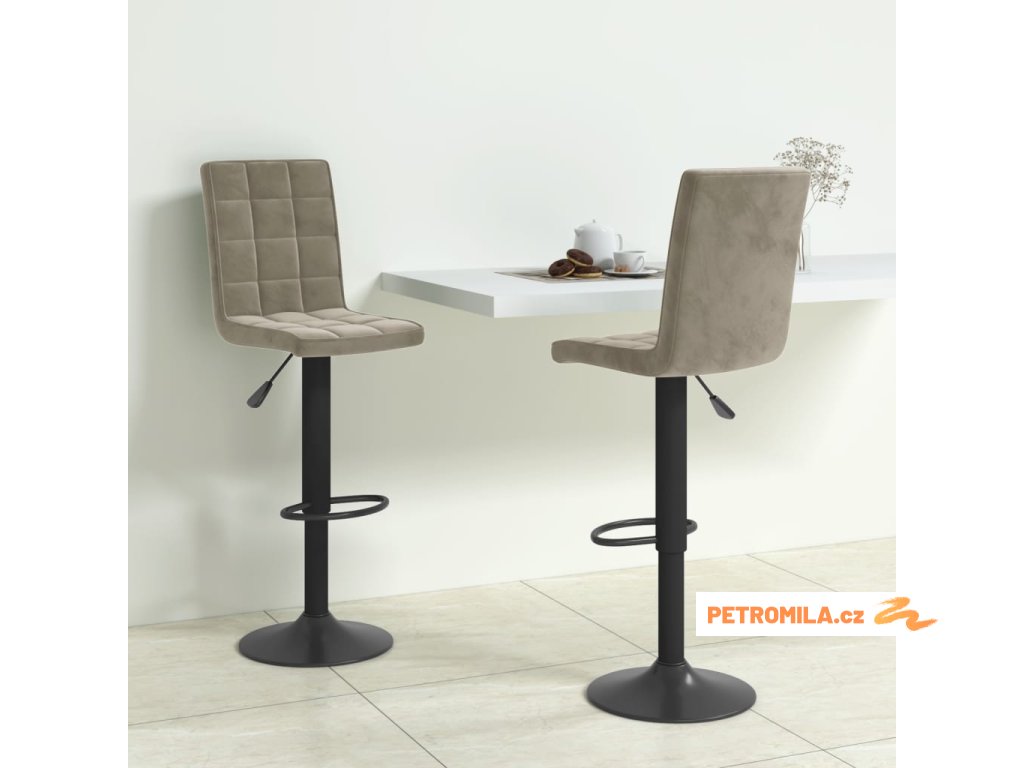 Tyto barové židle jsou čalouněné měkkým sametem, který je příjemný na dotek, a nabízí optimální komfort. Rám z oceli s černým práškovým nástřikem zaručuje mimořádnou odolnost, zatímco vestavěná opěrka na nohy vám zajistí pohodlnější posezení. Výšku židlí snadno upravíte pomocí mechanismu s plynovým pístem. Barové stoličky představují dokonalý doplněk do každého funkčního baru či jídelny. Židle se navíc otáčí o 360 stupňů, což jim dodává skvělou flexibilitu.
