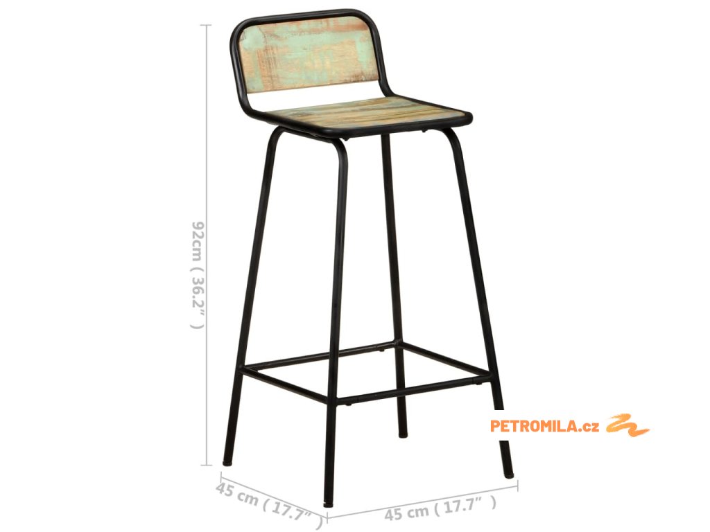 Tyto barové stoličky jsou vyrobené z masivního recyklovaného dřeva, které pochází z trámů, podlah a podpěrných nosníků ze starých budov určených k demolici. Může tedy sestávat z celé řady různých druhů dřeva, jako jsou borovice, teak, buk, dub, cedr, mangovník, akácie apod. Recyklované dřevo tak nabývá vlastností všech těchto rozličných typů dřevin. Navíc je již zestárlé, ošlehané a vyschlé, takže se nesmršťuje ani neohýbá. Tyto židle jsou celé ručně vyráběné a překrásná kresba dřeva dává každému kusu nábytku jedinečný a od všech ostatních lehce odlišný charakter. Ocelový rám s práškovým nástřikem zajišťuje extra stabilitu. Tyto hospodské stoličky mají také vestavěné opěrky nohou pro větší pohodlí při sezení.