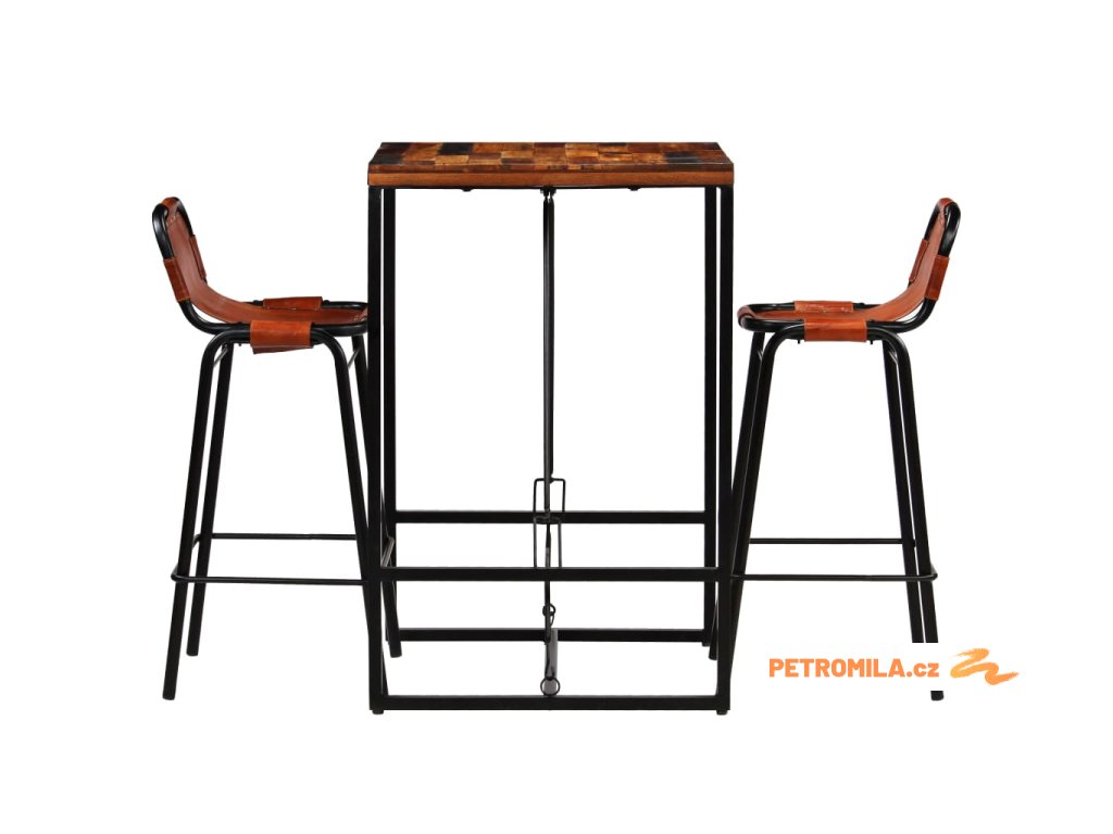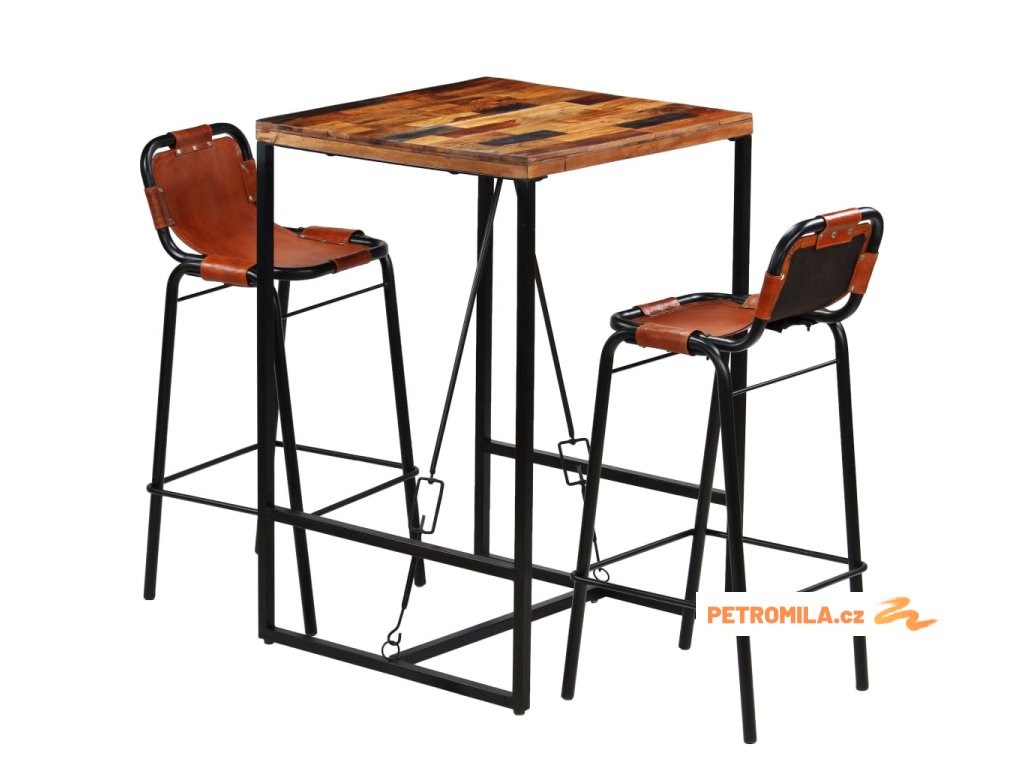 Barový set 3 kusy masivní recyklované dřevo a pravá kozí kůže