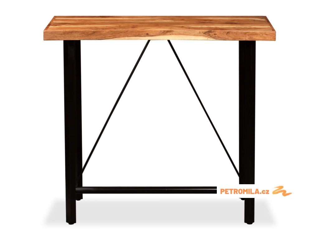 Barový stůl je vyrobený z masivního akáciového dřeva, které je odolné, stabilní a snadno se čistí. Stůl je celý ručně vyrobený a překrásná kresba dřeva dává každému kusu nábytku jeho jedinečný a od ostatních lehce odlišný charakter. Silné ocelové nohy přidávají stolu na stabilitě a odolnosti a navíc umocňují jeho působivý industriální styl.