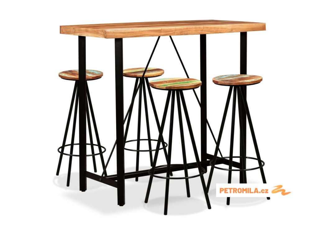 Barový set 5 kusů masivní akáciové a recyklované dřevo