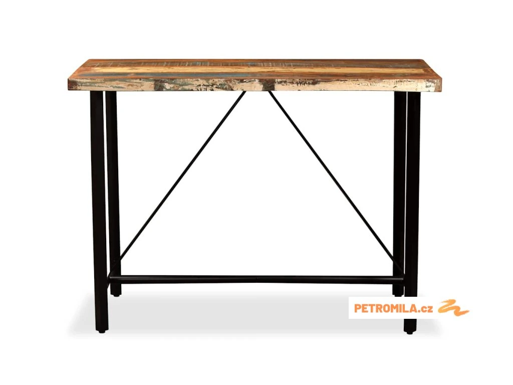 Barový stůl je vyrobený z masivního recyklovaného dřeva, takže má vlastnosti různých dřevin, jako jsou teak, mangovníkové dřevo, akácie atd. Recyklované dřevo je pevné, stabilní, odolné a také krásné. Známky opotřebení a řemeslného zpracování dávají každému kusu nábytku jedinečný charakter. Stůl je navíc celý ručně vyrobený. Silné ocelové nohy zajišťují stabilitu a odolnost stolu a umocňují jeho působivý industriální styl. Důležité upozornění: Kresba a odstín dřeva se mohou lišit kus od kusu, a proto je každý kus nábytku naprosto jedinečný. Výběr kusu k dodání je náhodný.