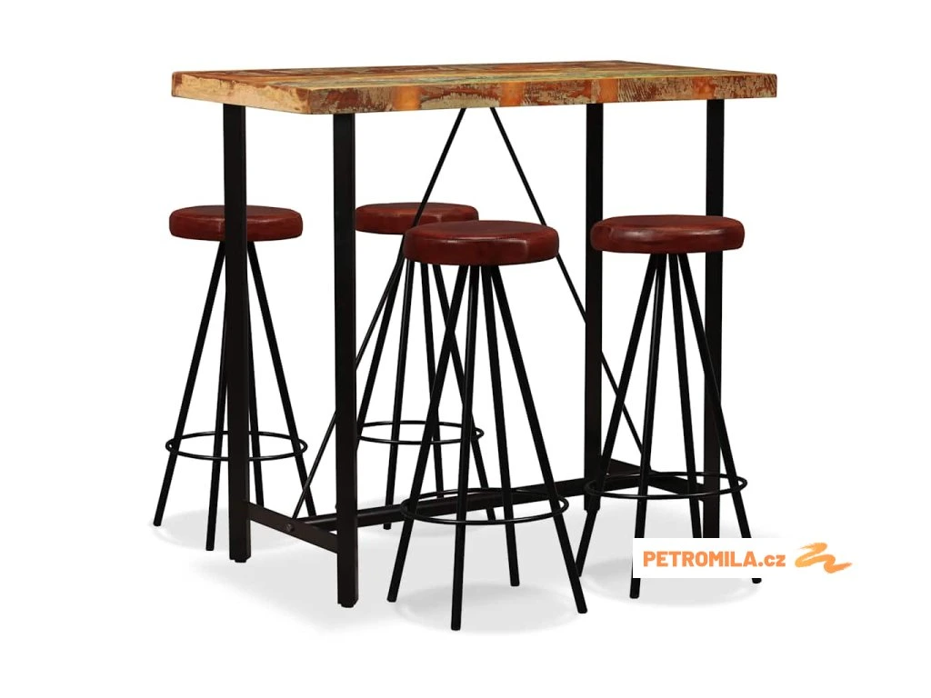 Barový set 5 kusů masivní recyklované dřevo a pravá kůže