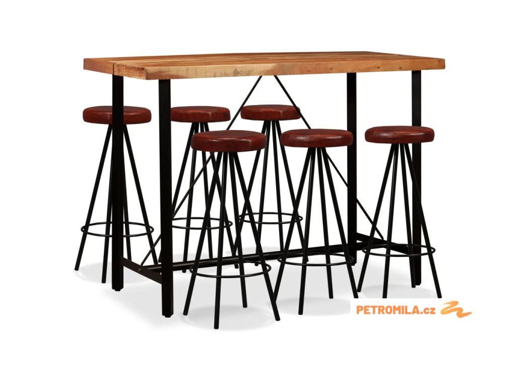 Barový set 7 kusů masivní akáciové dřevo a pravá kůže