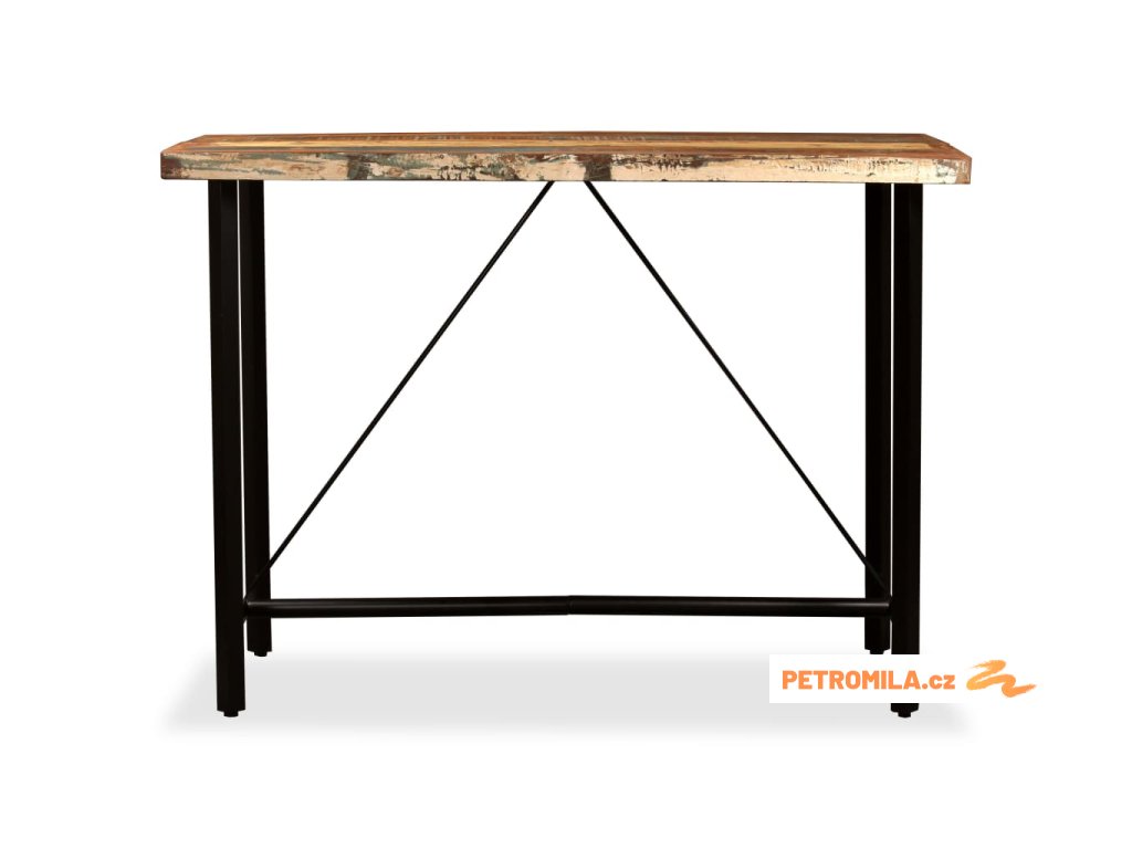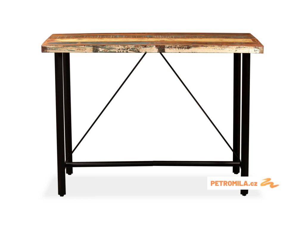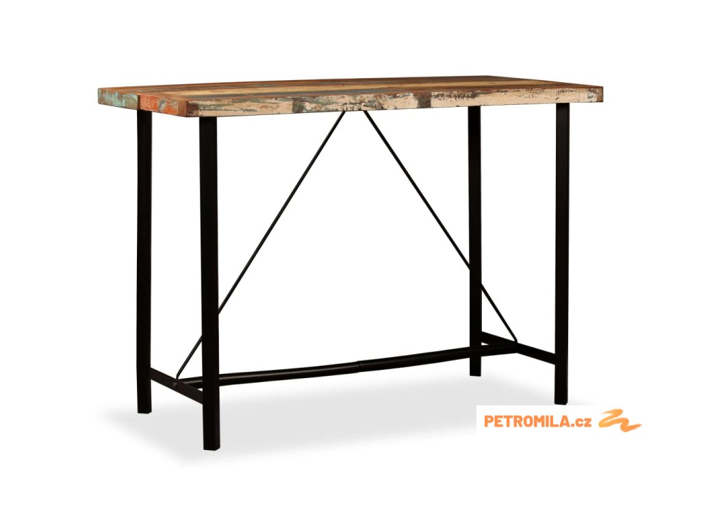 Barový stůl je vyrobený z masivního recyklovaného dřeva, takže má vlastnosti různých dřevin, jako jsou teak, mangovníkové dřevo, akácie atd. Recyklované dřevo je pevné, stabilní, odolné a také krásné. Známky opotřebení a řemeslného zpracování dávají každému kusu nábytku jedinečný charakter. Stůl je navíc celý ručně vyrobený. Silné ocelové nohy zajišťují stabilitu a odolnost stolu a umocňují jeho působivý industriální styl. Důležité upozornění: Kresba a odstín dřeva se mohou lišit kus od kusu, a proto je každý kus nábytku naprosto jedinečný. Výběr kusu k dodání je náhodný.