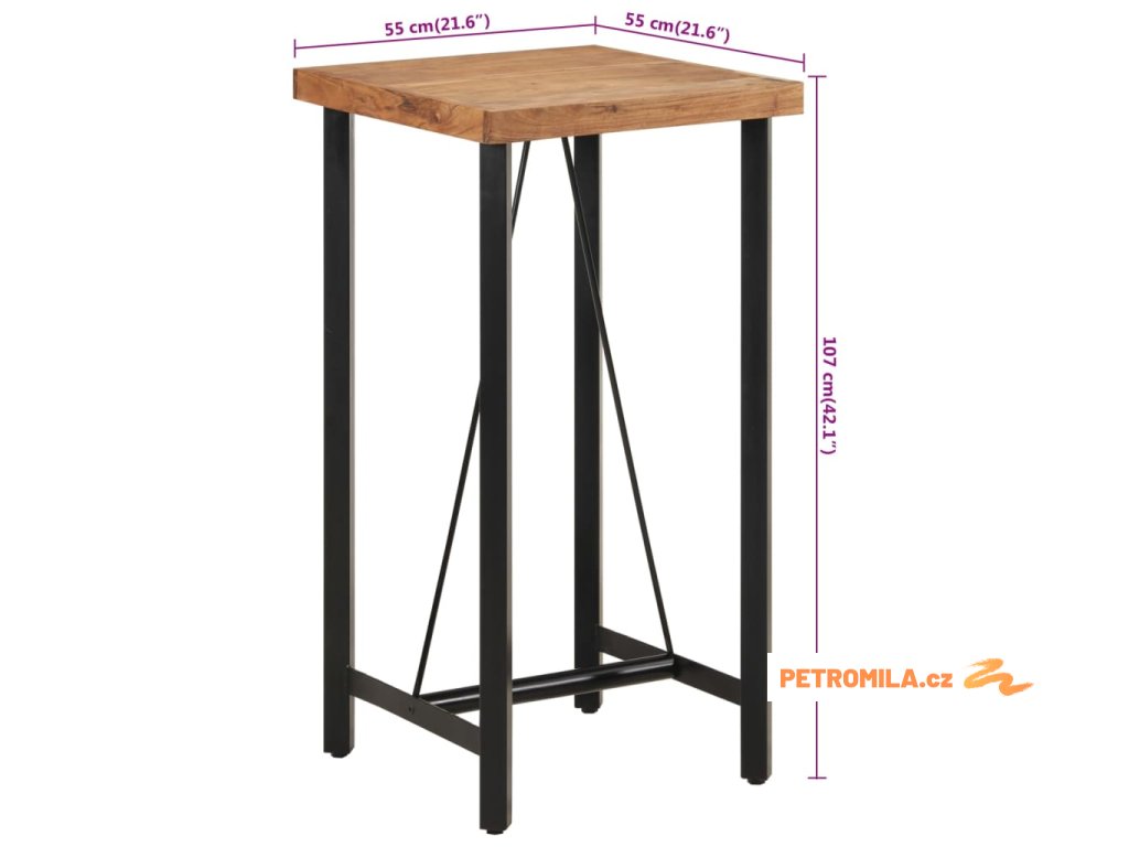 Barový stolek 55 x 55 x 107 cm masivní akáciové dřevo a železo