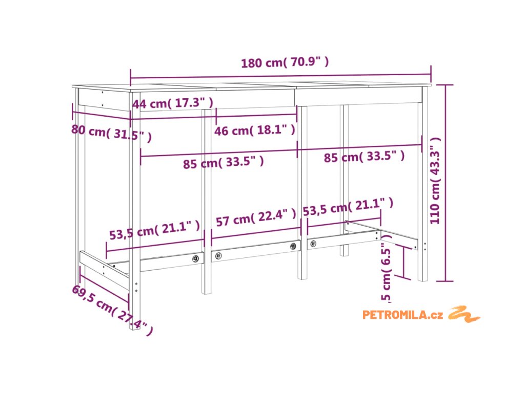 - Rozměry: 180 x 80 x 110 cm (Š x H x V)