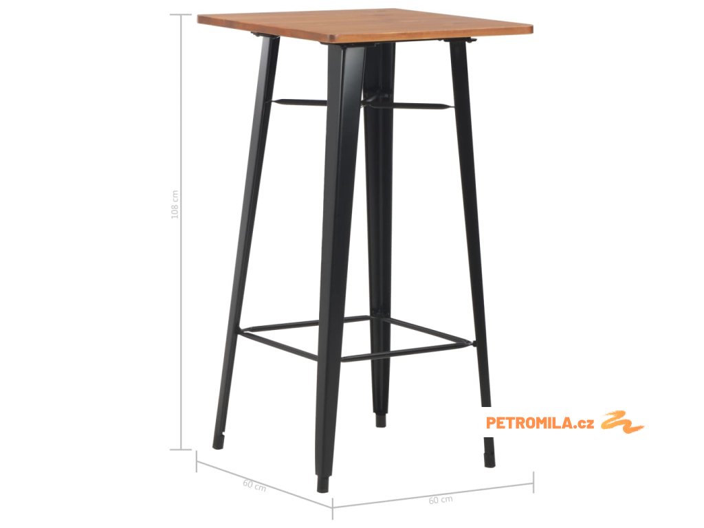 Barový stůl černý 60 x 60 x 108 cm masivní borové dřevo ocel