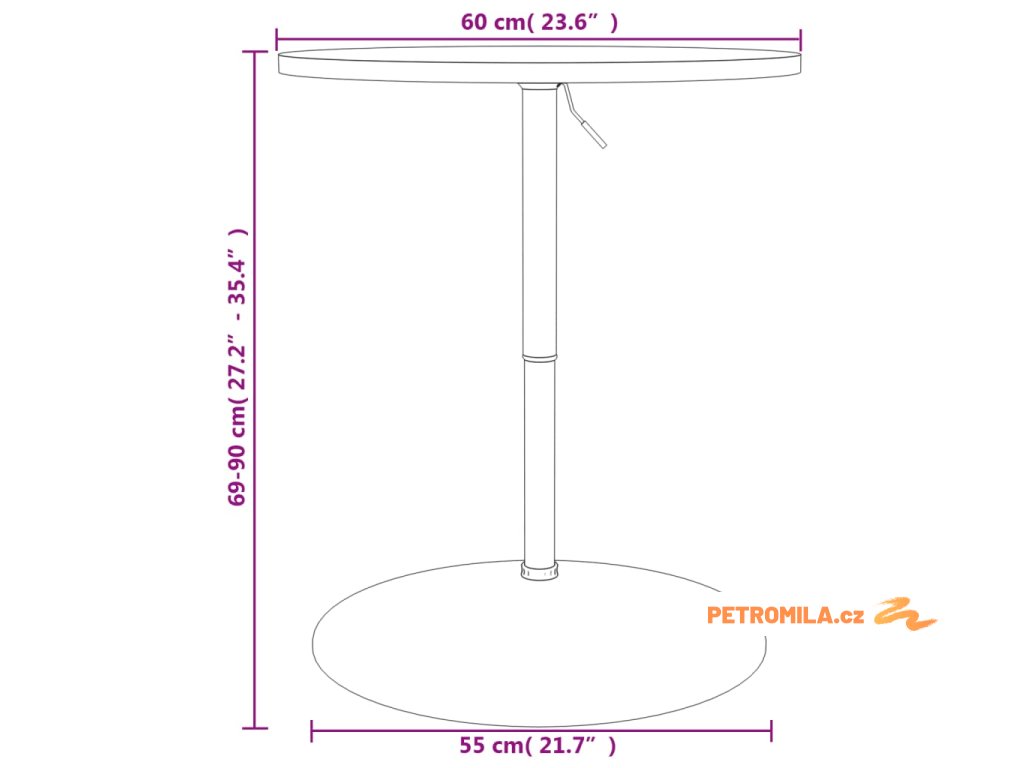 - Rozměry: 60 x (69–90) cm (průměr x V)