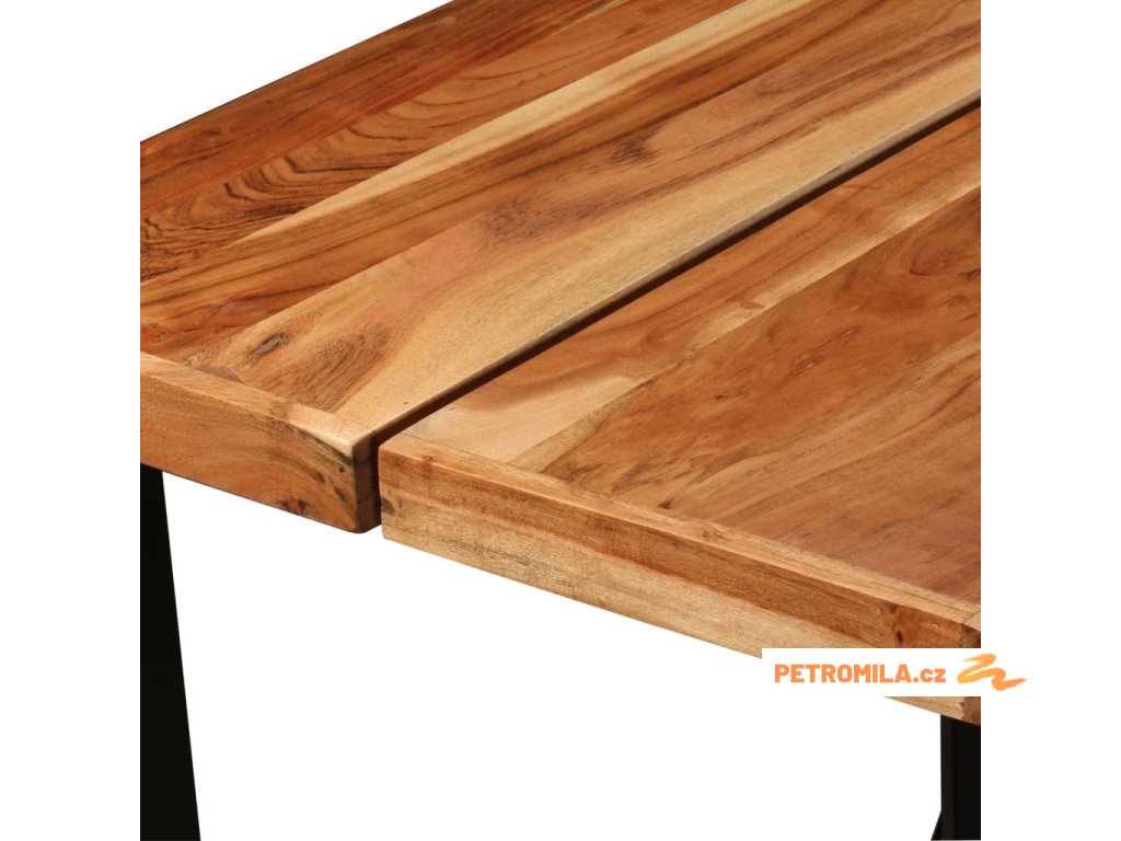 Barový stůl je vyrobený z masivního akáciového dřeva, které je odolné, stabilní a snadno se čistí. Stůl je celý ručně vyrobený a překrásná kresba dřeva dává každému kusu nábytku jeho jedinečný a od ostatních lehce odlišný charakter. Silné ocelové nohy přidávají stolu na stabilitě a odolnosti a navíc umocňují jeho působivý industriální styl.