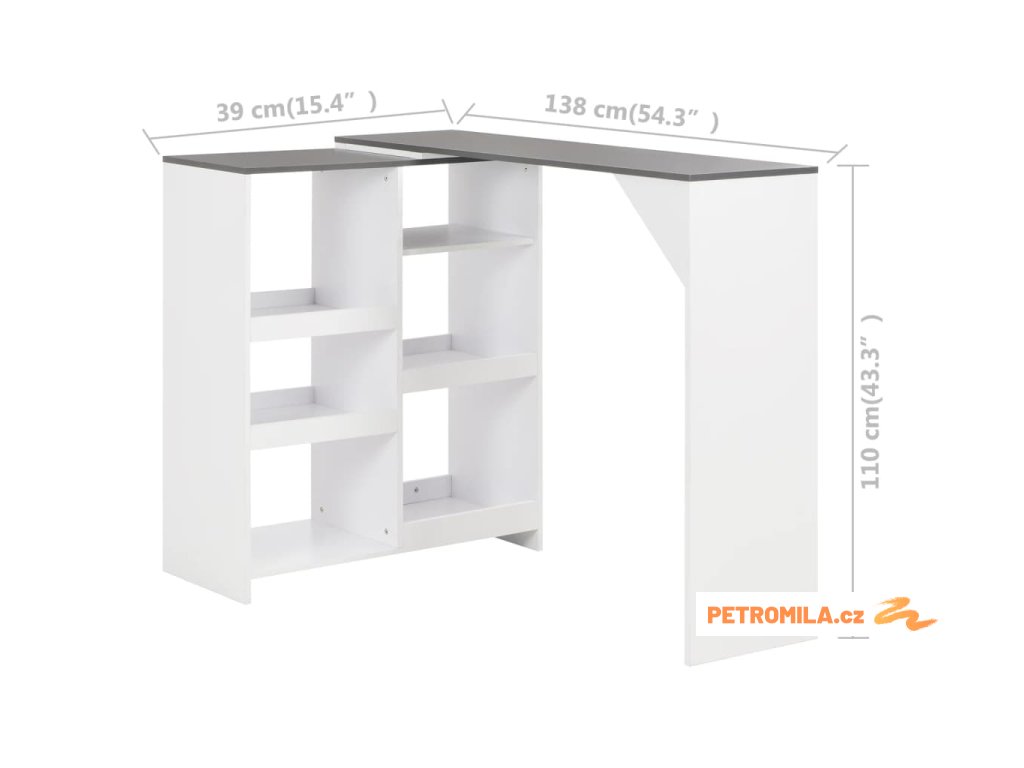 Barový stůl s pohyblivým regálem bílý 138 x 39 x 110 cm