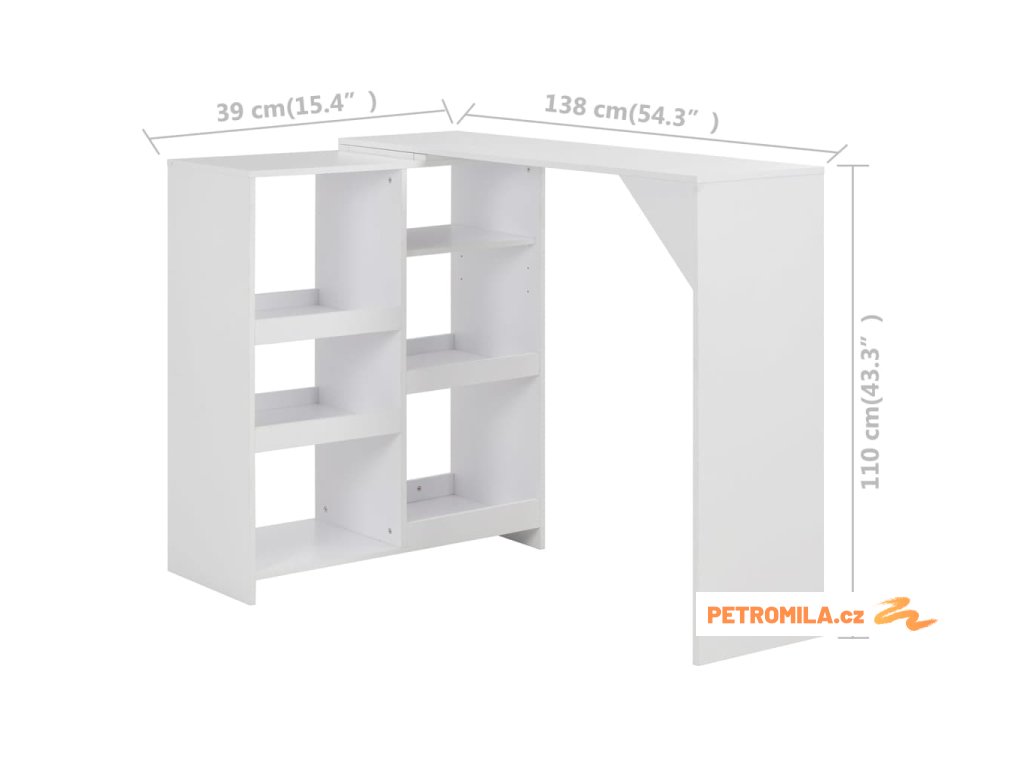 Barový stůl s pohyblivým regálem bílý 138 x 39 x 110 cm