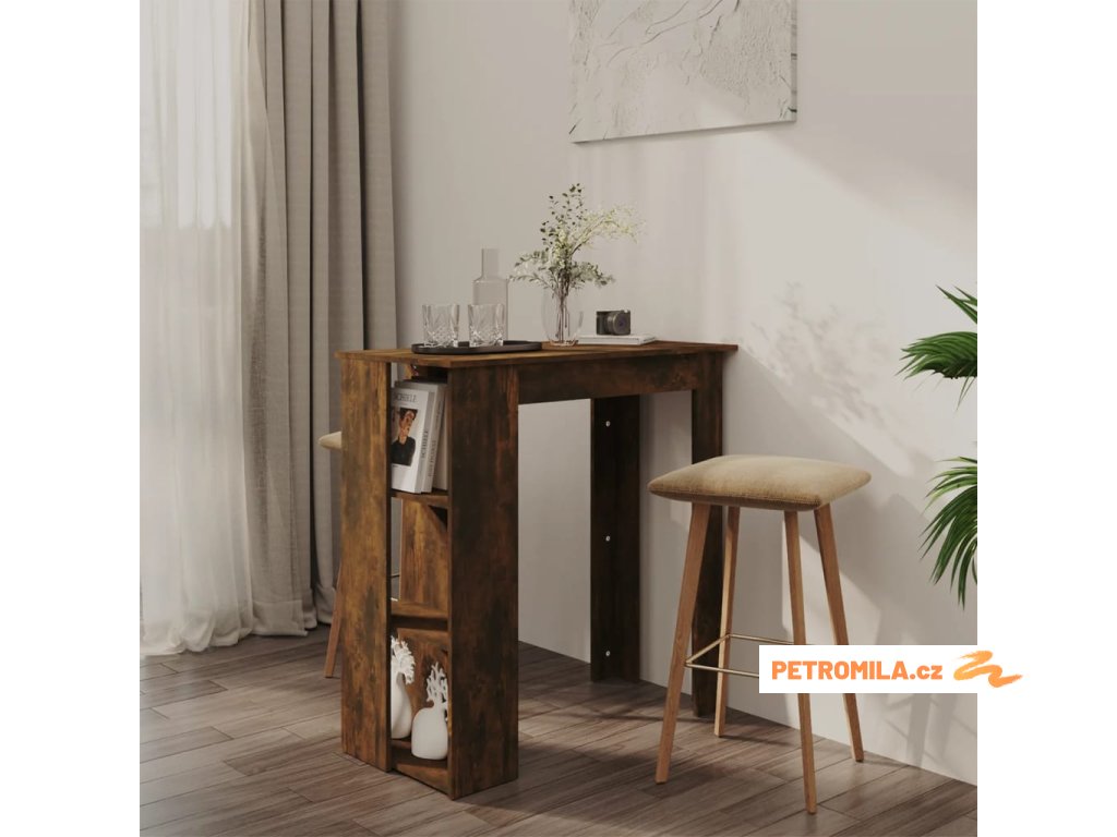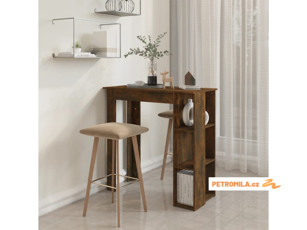 Barový stůl je vybavený 3 úložnými poličkami a poskytuje dostatek prostoru pro uložení lahví vína nebo jiných předmětů. Jeho konstrukce je odolná, stabilní a snadno se čistí.