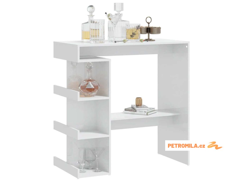 Barový stůl MDF s policemi na víno bílý s vysokým leskem