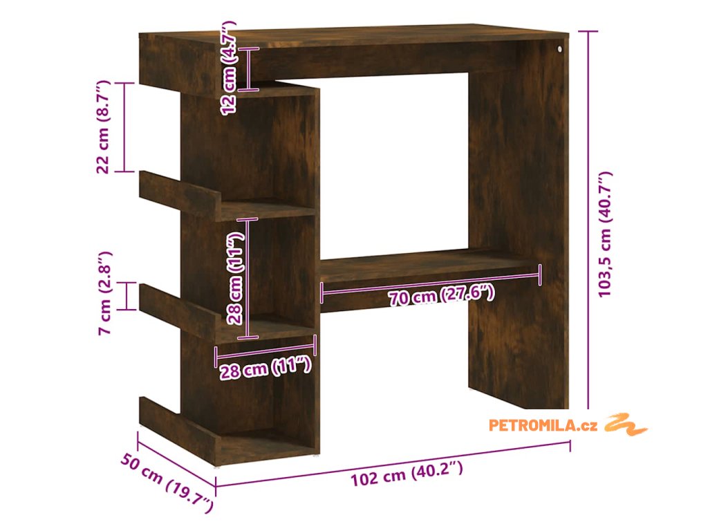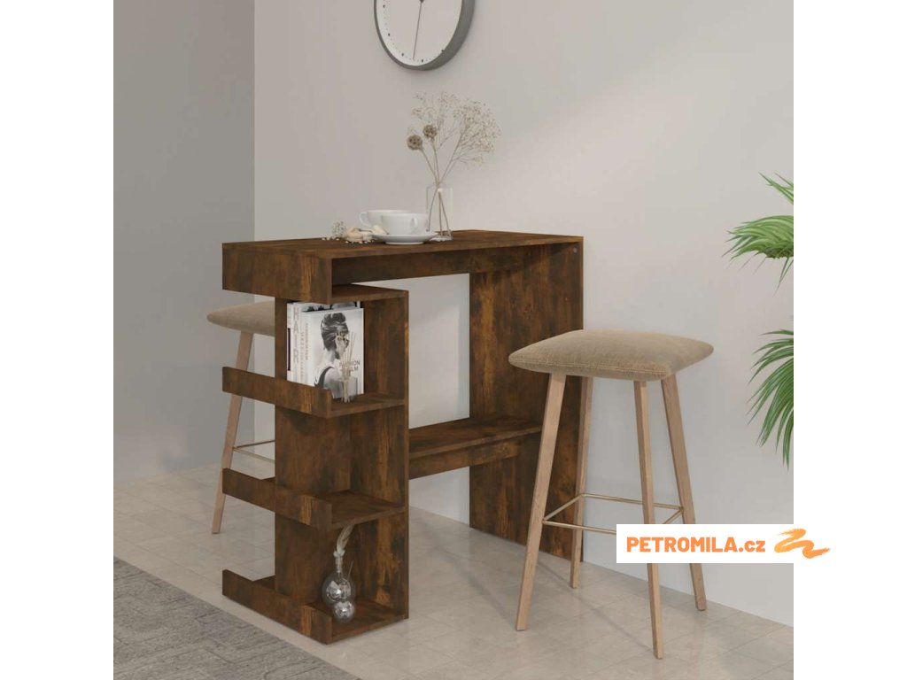 Barový stůl s úložným regálem kouřový dub 100 x 50 x 101,5 cm