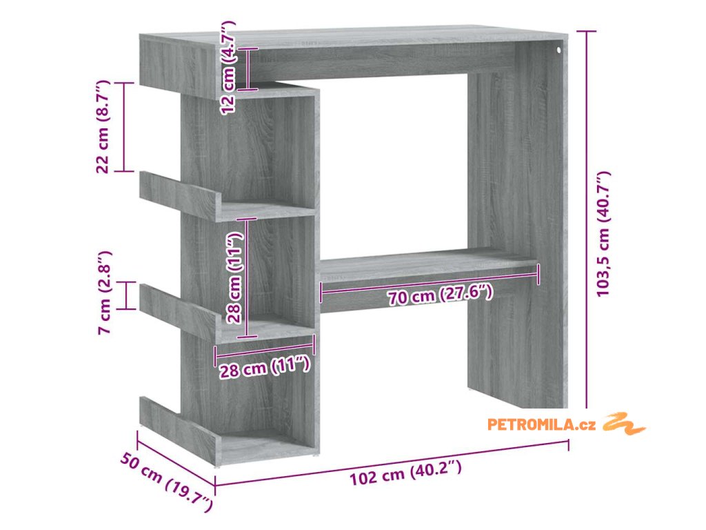 Barový stůl s úložným regálem šedý dub sonoma 100x50x101,5 cm