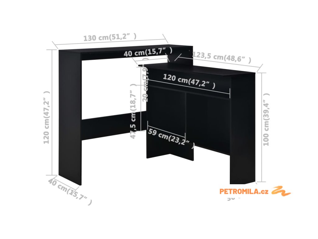 Barový stůl se 2 stolními deskami černý 130 x 40 x 120 cm