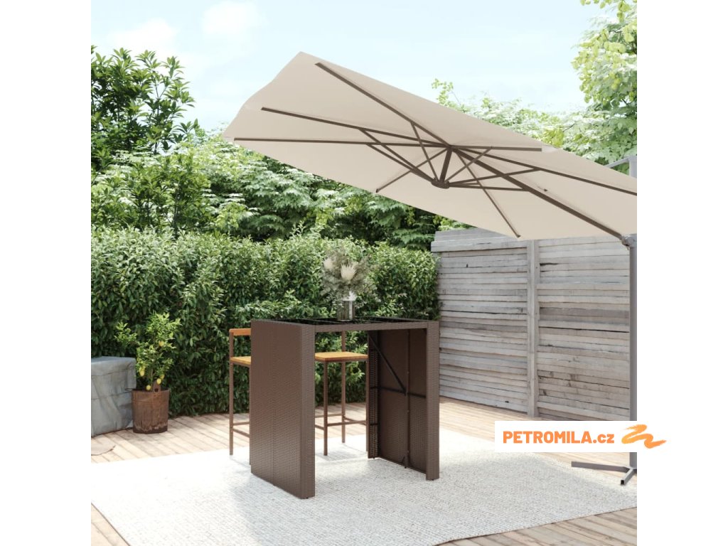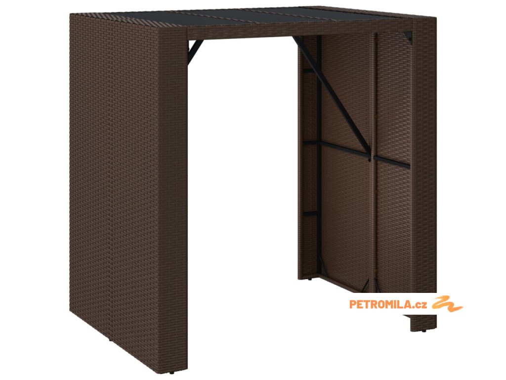 Barový stůl se skleněnou deskou hnědý 105x80x110 cm polyratan