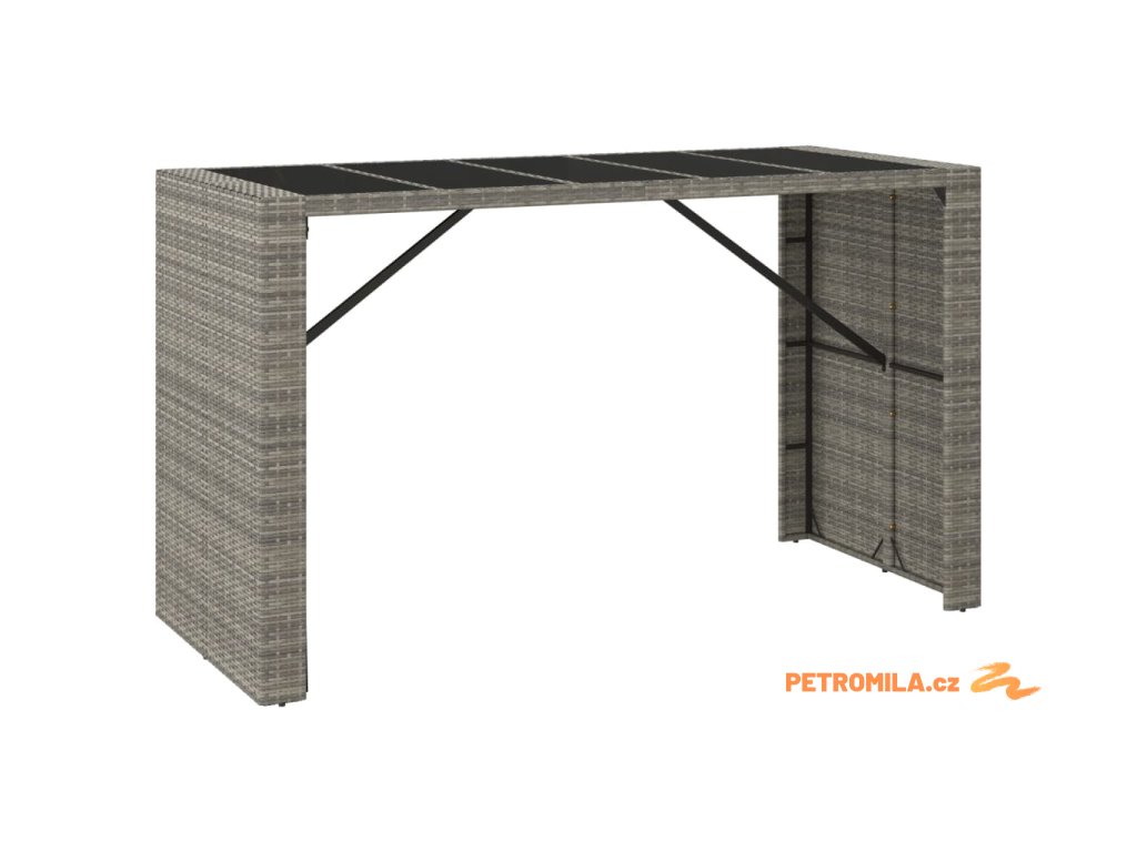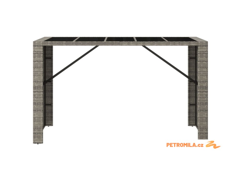 Barový stůl se skleněnou deskou šedý 185x80x110 cm polyratan