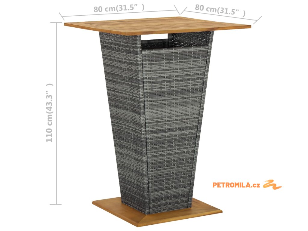Barový stůl šedý 80 x 80 x 110 cm polyratan a masivní akácie
