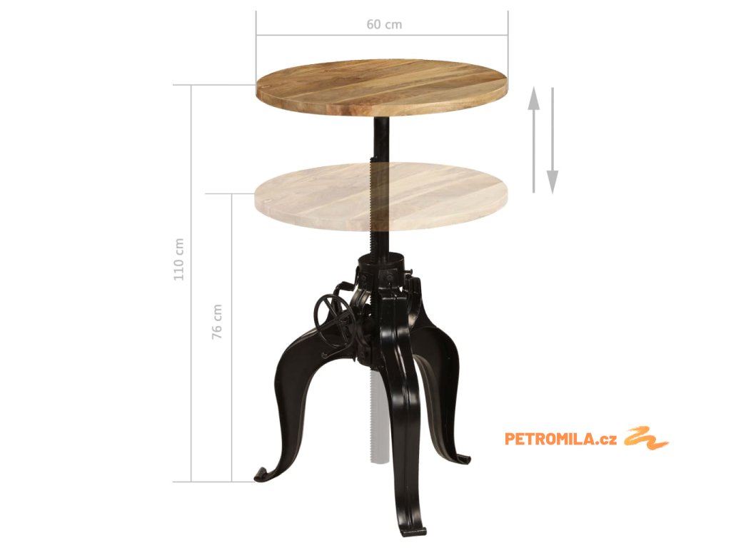 Barový stůl z masivního mangovníkového dřeva 60 x (76–110) cm