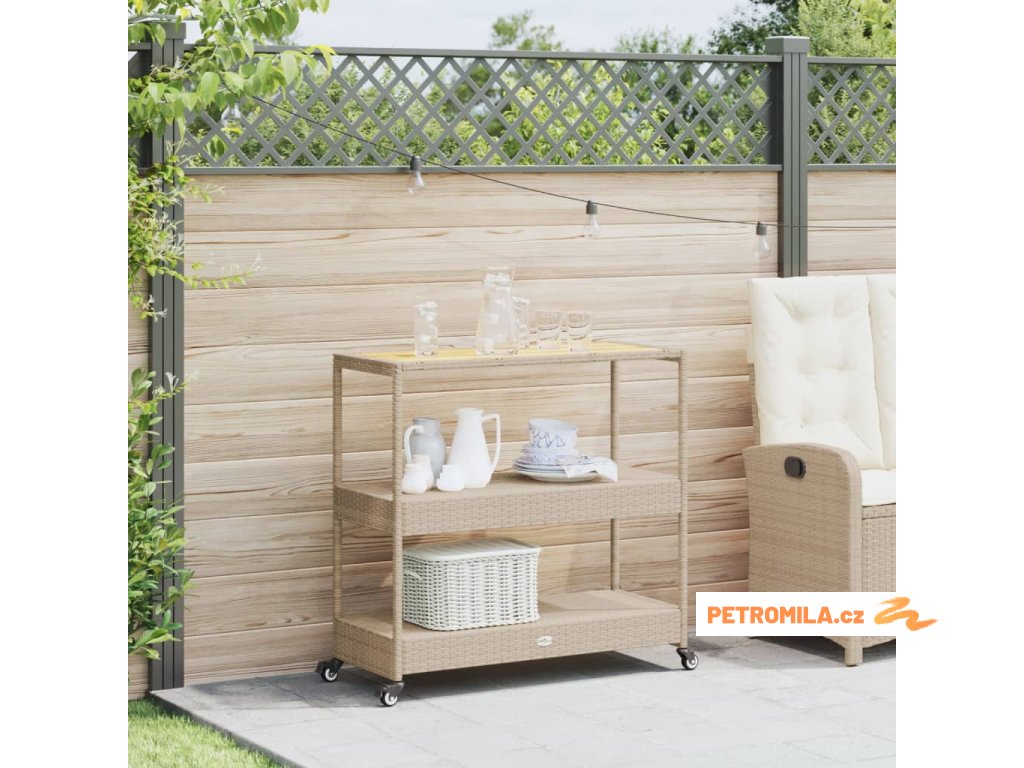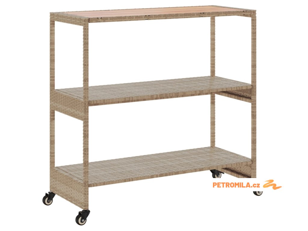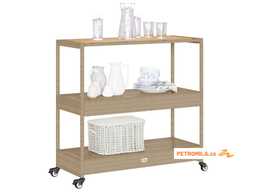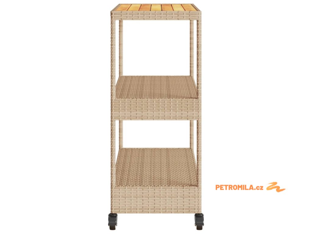 Barový vozík 3patrový béžový polyratan a masivní akáciové dřevo