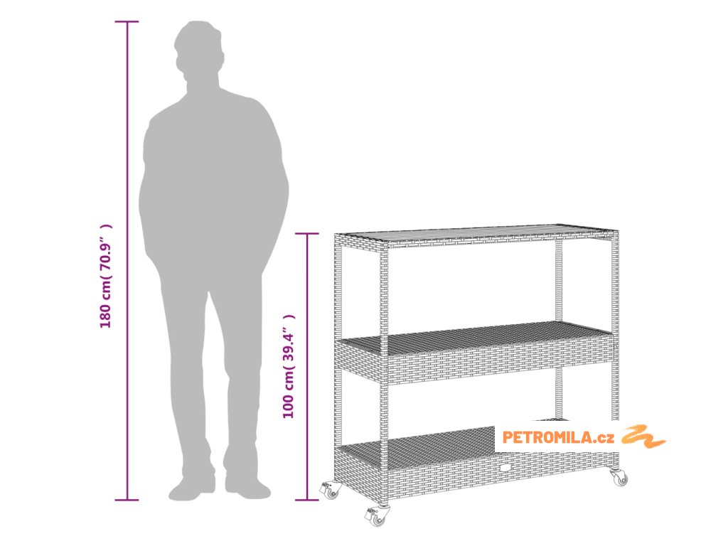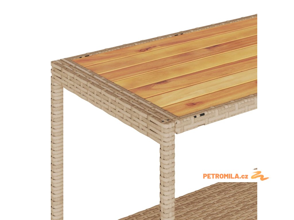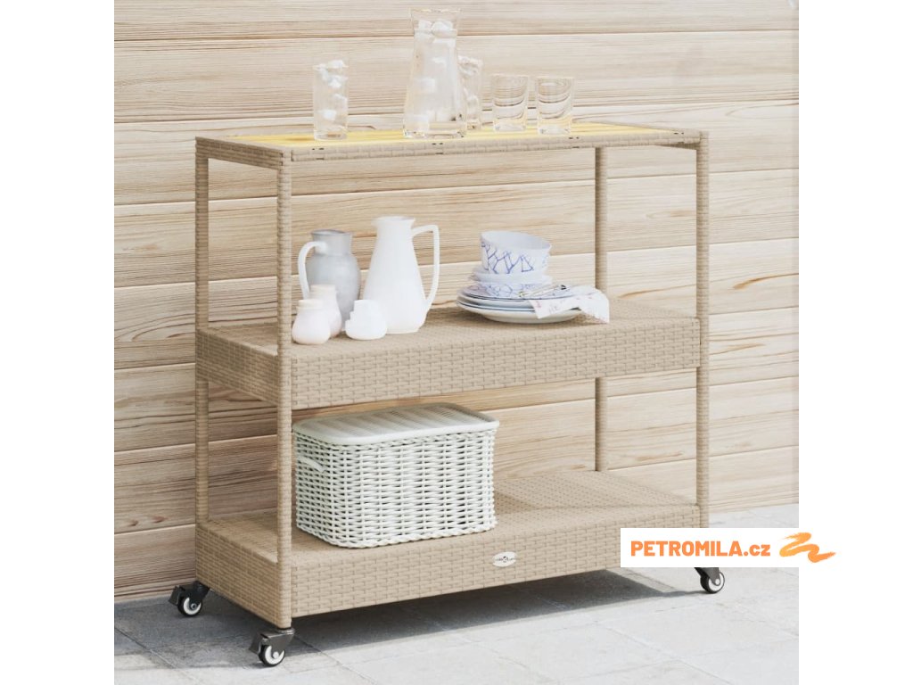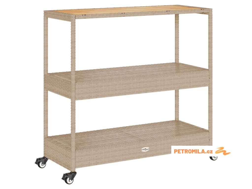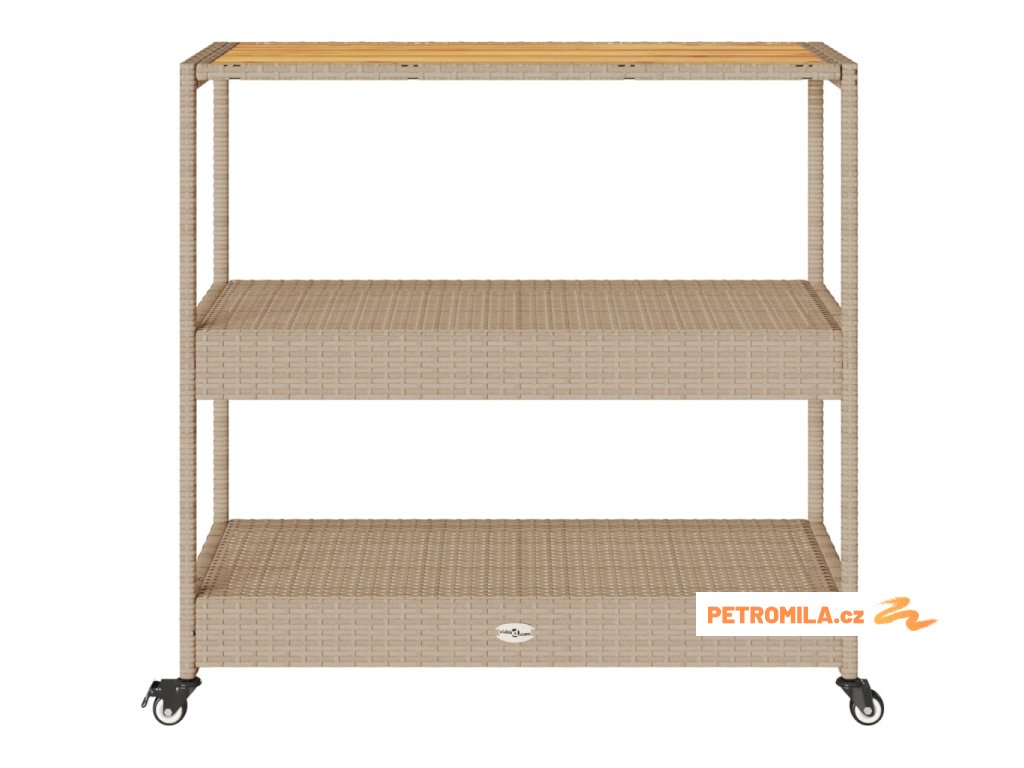Barový vozík 3patrový béžový polyratan a masivní akáciové dřevo