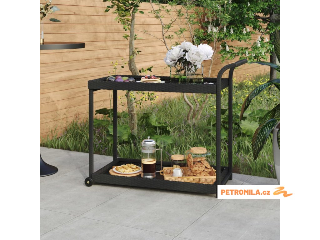 Tento vozík je vyroben z polyratanu, je odolný vůči povětrnostním vlivům a vyžaduje minimální údržbu. Poskytuje dostatečný úložný prostor pro umístění nápojů, lahodných pokrmů, ovoce atd. Ocelový rám s práškovým nástřikem zajišťuje stabilitu a odolnost vozíku. Pomocí rukojeti na horní straně můžete vozík snadno tlačit nebo táhnout za sebou. Disponuje hladce se otáčejícími kolečky, takže lze s vozíkem bez námahy pohybovat.