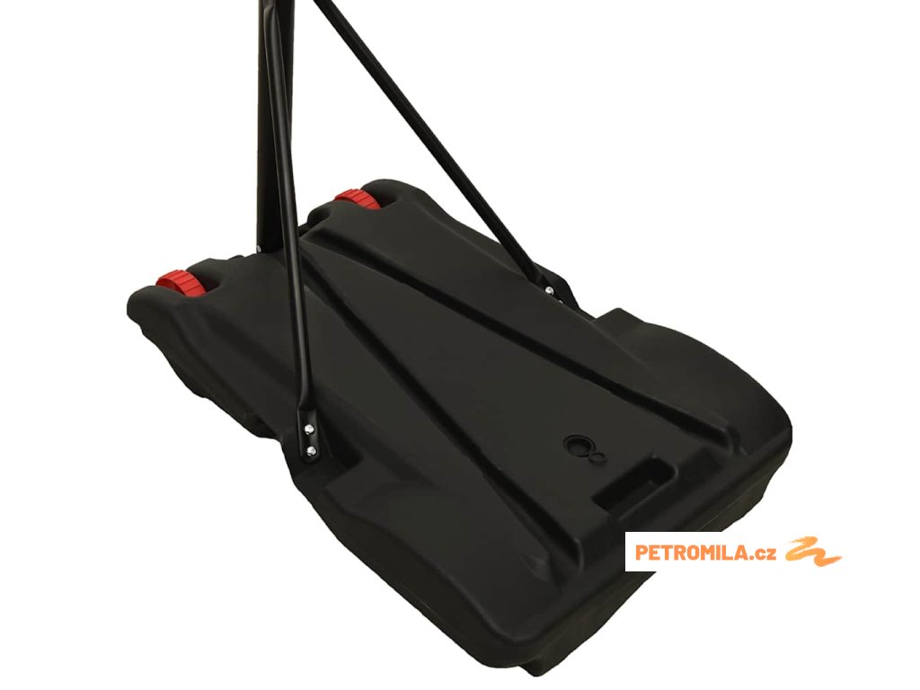 - Stabilní základna: Přenosný basketbalový stojan má trojúhelníkový stabilní design. Základnu lze naplnit vodou nebo pískem, což zvyšuje stabilitu basketbalového sloupku.
