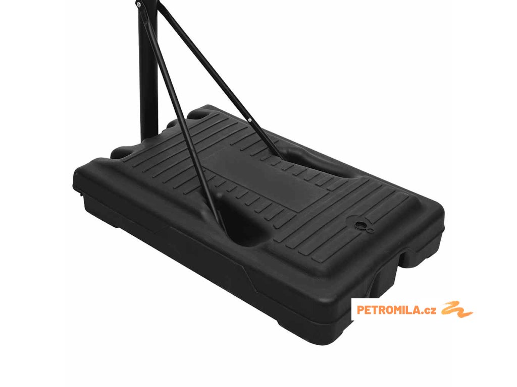 - Stabilní základna: Přenosný basketbalový stojan má trojúhelníkový stabilní design. Základnu lze naplnit vodou nebo pískem, což zvyšuje stabilitu basketbalového sloupku.