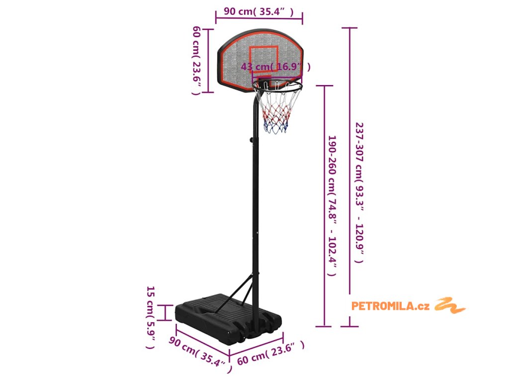 - Nastavitelná výška: Stojan na basketbalový koš má nastavitelnou výšku a lze jej natáhnout tak, aby vyhovoval různým hráčům. Tento basketbalový stojan lze nastavit na výšku od 237 cm do 307 cm.