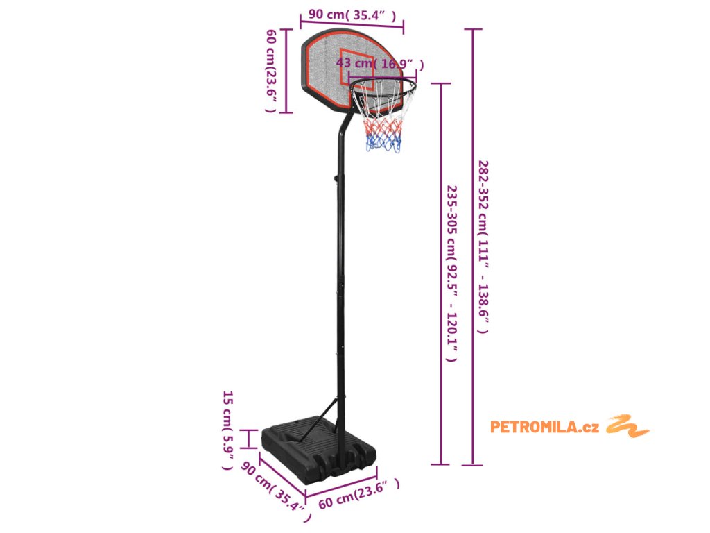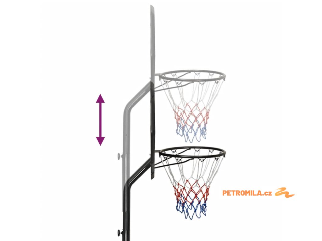 - Nastavitelná výška: Stojan na basketbalový koš má nastavitelnou výšku a může se přizpůsobit tak, aby seděl různým hráčům. Tento basketbalový stojan lze nastavit na výšku od 282 cm do 352 cm.