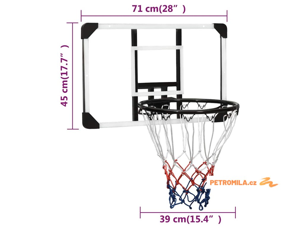 Basketbalový koš s průhlednou deskou 71x45x2,5 cm polykarbonát