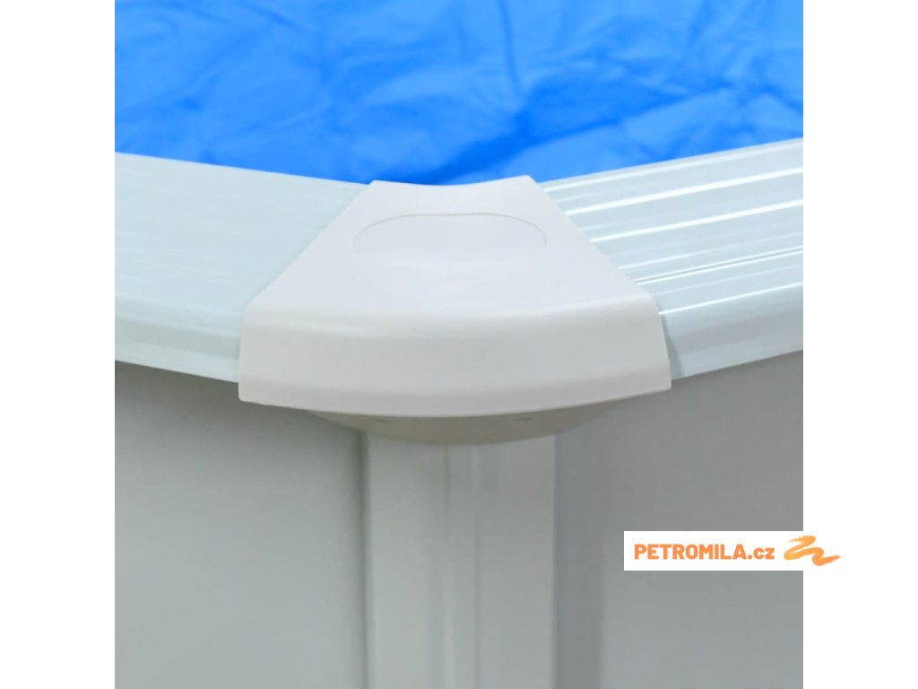 Bazén má ocelové stěny a je obložen pevnými PVC materiály, které jsou odolné vůči chladu a zajišťují extra pevnost a odolnost bazénu. Bílý rám s modrou vložkou navíc zkrášlí každou zahradu. Nadzemní bazén postavíte snadno a rychle. Přiložený skimmer se postará o prvotřídní čištění, přičemž nečistoty z hladiny posbírá účinněji a lépe. Čtyřstupňový bezpečnostní žebřík pomáhá uživatelům při vstupu i výstupu z bazénu.