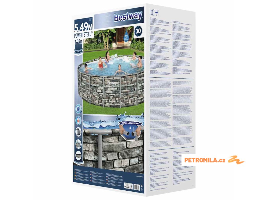 Stylový bazén má zpevněné stěny z materiálu Tritech. Jedná se o vyztužený 3vrstvý materiál, který se skládá z vysoce odolného laminovaného PVC a polyesterové síťoviny. Prémiová ocelová konstrukce nadzemního bazénu a jeho zesílené stěny zaručují, že je bazén vysoce stabilní a odolný. Rám bazénu je navíc vybavený systémem Seal & Lock pro pevné a bezpečné propojení trubek. Další výhodou tohoto bazénu je rychlé a snadné sestavení. Stačí ho položit na rovný povrch, postavit celou konstrukci a poté bazén naplnit vodou. Bazén můžete kdykoliv jednoduše a rychle vypustit vypouštěcím ventilem.